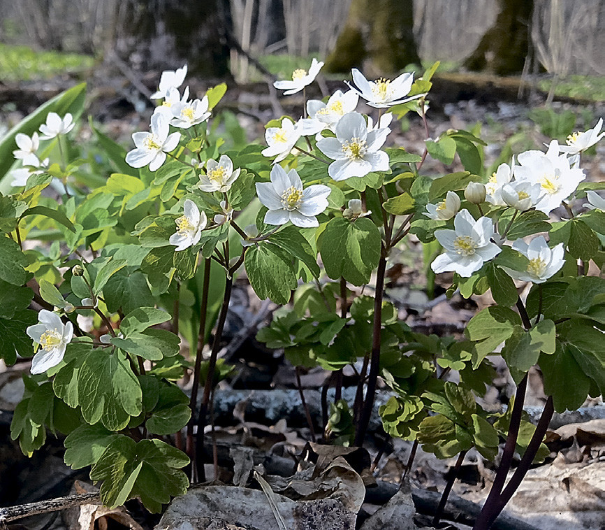 Но вернёмся в равнинные хвойно-широколиственные леса, в которых спрятались до поры наши герои. И как же радуется взор после зимнего монохрома этим отважным ярким храбрецам — таким хрупким и нежным и при этом стойким к любым сюрпризам пока ещё капризной погоды! Ведь часто уже после их зацветания неожиданно возвращаются холода и снегопады, но они благополучно переносят их благодаря особенностям своего строения. Каким? Листья ветрениц, например, имеют сильно складчатую поверхность, наподобие смятого листа бумаги, и расправляются полностью не сразу, а постепенно, по мере прогревания воздуха.