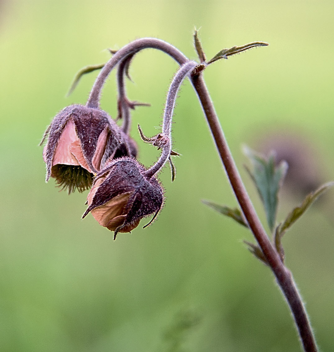 Возле говорливых речек, на сыром лугу или на окраине болота всегда отыщется растение с тёмно-красным стеблем и поникающими розоватыми цветками, напоминающими маленькие колокольчики, — это гравилат речной (Geum rivale) из семейства Розовые (Rosaceae). Отдельный побег может запросто затеряться среди буйно разросшихся соседей, что особенно характерно для влажных мест. Но обильные заросли этого вида точно никого не оставят равнодушным! Изрезанные ажурные листья, яркие стебли с белым пушком, изогнутые, словно лебединые шеи, цветоносы, элегантные цветки… Всё это в массе создаёт изумительную картину, нарисованную природой мягкими пастельными красками. Образец спокойного, чуть меланхоличного пейзажа, исполненного тишины.