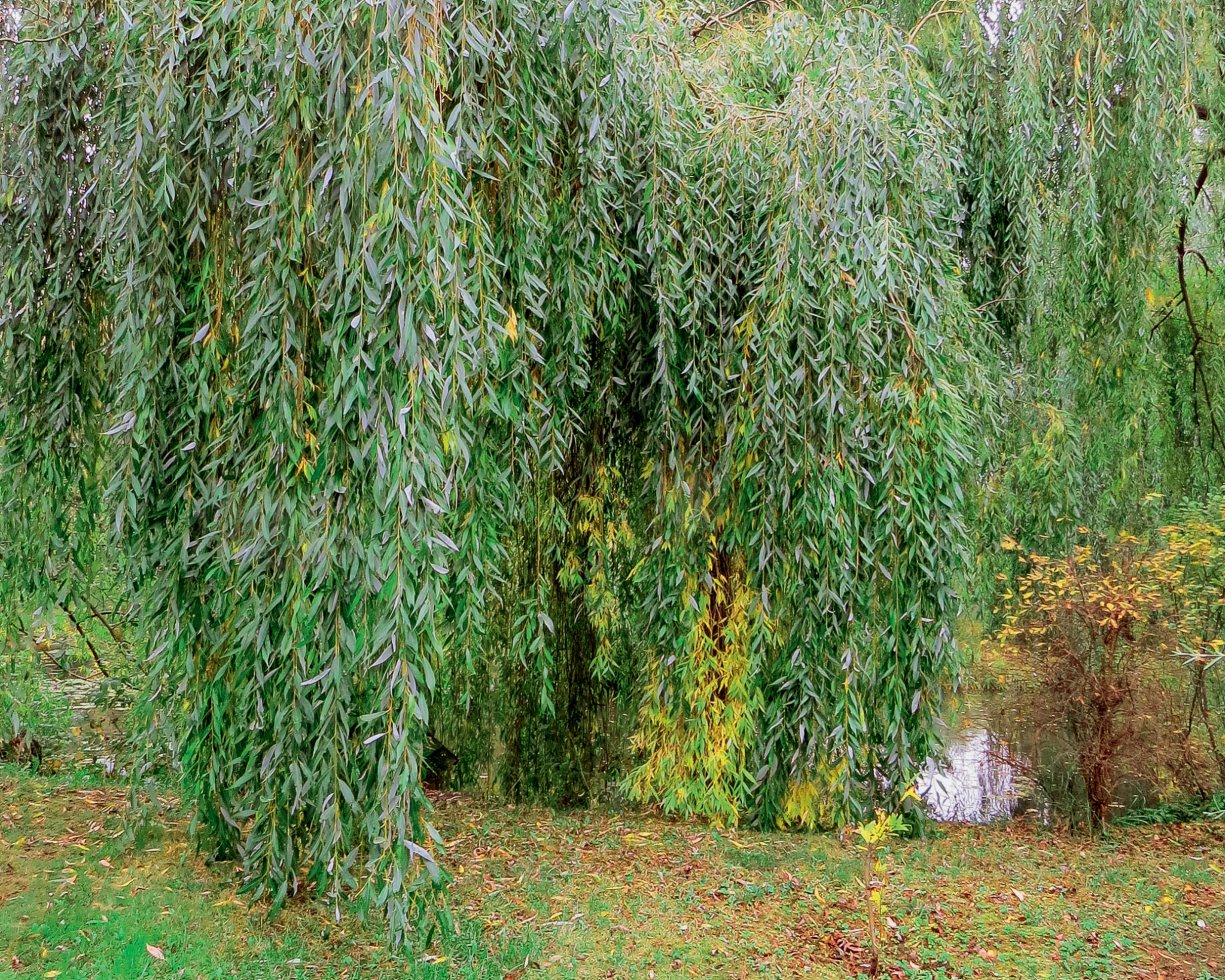 Это о вётлах — ивах белой, понтийской и их гибридном потомке — иве ломкой, массивные кроны которых окружают водоёмы как кучевые облака. Из среднерусских ив плакучесть свойственна только белой, но и ей далеко до вавилонской, задающей верхнюю планку. Тонкие годичные побеги вавилонской ивы достигают 3—4 м длины и спадают вертикально. Весной — водопадом золотистых соцветий, а летом — потоком блестящей листвы. Но она слишком теплолюбива. К счастью, многие виды легко скрещиваются, и уже давно удалось соединить зимостойкость ивы белой с плакучестью вавилонской. Особенно удачен популярный европейский гибрид — ива золотистоволосистая (S. × sepulcralis Chrysocoma).