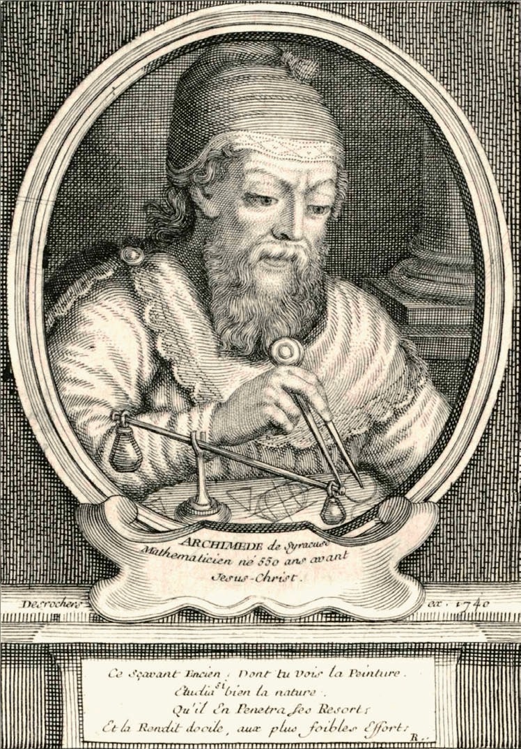 Архимед — геометр. Старинная гравюра, 1740 год.