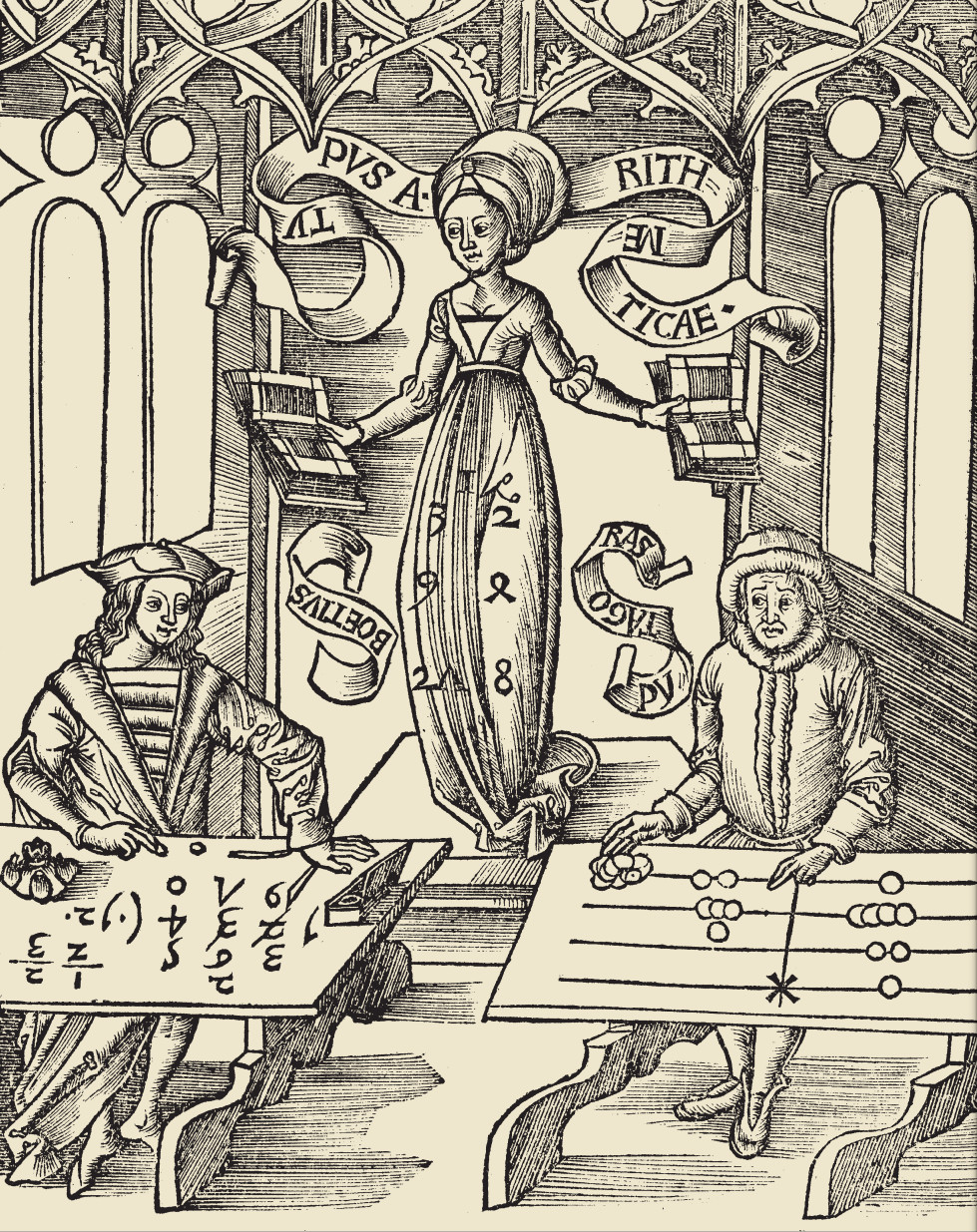 Для нас же важно, что при вычислениях на абаке жетон с цифрой нуль не нужен. При отсутствии цифр данного разряда эта колонка просто остаётся пустой. Средневековые математики никак не могли отказаться от старого принципа, что только единицы имеют свой символ, а если единицы нет, то не должно быть и символа. Сторонники арифметических вычислений исключительно при помощи абака — абакисты (абацисты) — не могли использовать все возможности позиционной системы, что, впрочем, не мешало эффективности их практических вычислений. На протяжении нескольких столетий абакисты вели ожесточённую борьбу с алгоритмиками — приверженцами математики аль-Хорезми и Фибоначчи.