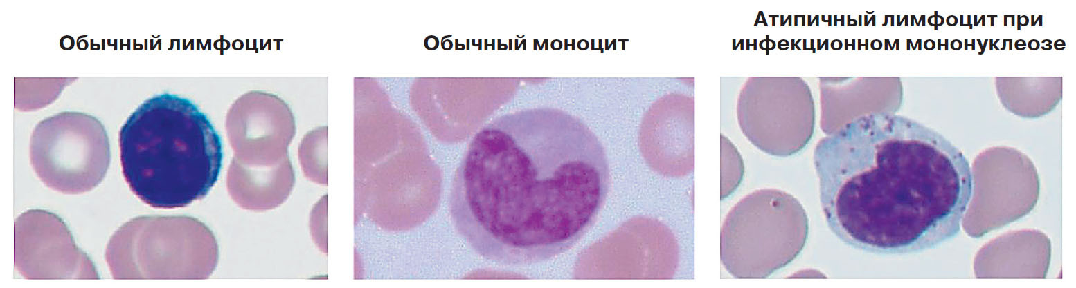 Первичная инфекция EBV обычно случается в детстве и проходит незаметно, не вызывая явных симптомов. Подростки и взрослые могут заметить, что заразились EBV: острая инфекция у них часто сопровождается лихорадкой, воспалением лимфоузлов, болями в горле, мышцах и слабостью. Такое состояние, вызванное вирусом Эпштейна — Барр, называется инфекционным мононуклеозом, или «болезнью поцелуев», так как чаще всего вирус передаётся от человека к человеку через слюну. Мононуклеоз получил своё название из-за характерной картины мазка крови, в которой обнаруживается большое количество клеток, напоминающих моноциты, — ещё один тип иммунных клеток крови. Эти клетки на самом деле не моноциты и даже не заражённые B-лимфоциты, a нетипичные T-лимфоциты — армия иммунной системы, вышедшая на борьбу с EBV.