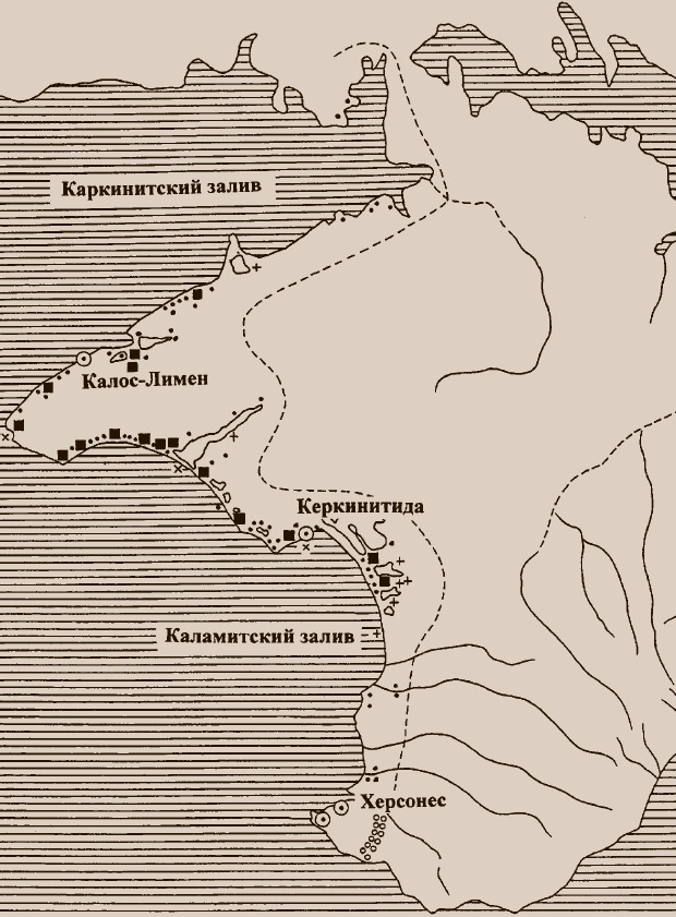 «Херсонес» в переводе с древнегреческого — полуостров. Так греки, в частности, называли юго-западную часть Крыма, которая лежит между Балаклавской и Севастопольской бухтами и сейчас носит название Гераклейского полуострова. «Гераклейский» — по имени Гераклеи Понтийской, греческого города на юге Чёрного моря, выходцы из которого, совместно с жителями острова Делос, и основали Херсонес Таврический в последней трети VI века до н. э. Таврами назывался горный народ, они жили в этих местах задолго до прихода греков, занимаясь отгонным скотоводством и пиратством. Как дорийцам удалось управиться с этими «варварами» — неизвестно, но уже к последней четверти IV века до н. э. поселения тавров исчезают с Гераклейского полуострова. Во второй четверти IV века до н. э. Херсонес осваивает ближайшие к себе земли. Но местность, в которой был основан город, гористая. Там хорошо растёт виноград, но не очень хорошо — хлеб. Видимо, довольно долго Херсонес и Гераклея Понтийская получали зерно из Феодосии. Но в 360-е годы Феодосию захватило Боспорское царство*, и Херсонес был вынужден искать новые источники хлеба. В третьей четверти IV века до н. э. город захватывает Северо-Западный Крым, который и становится своего рода житницей, а сам Херсонес из сравнительно небольшого полиса превращается в обширное, по античным меркам, государство.