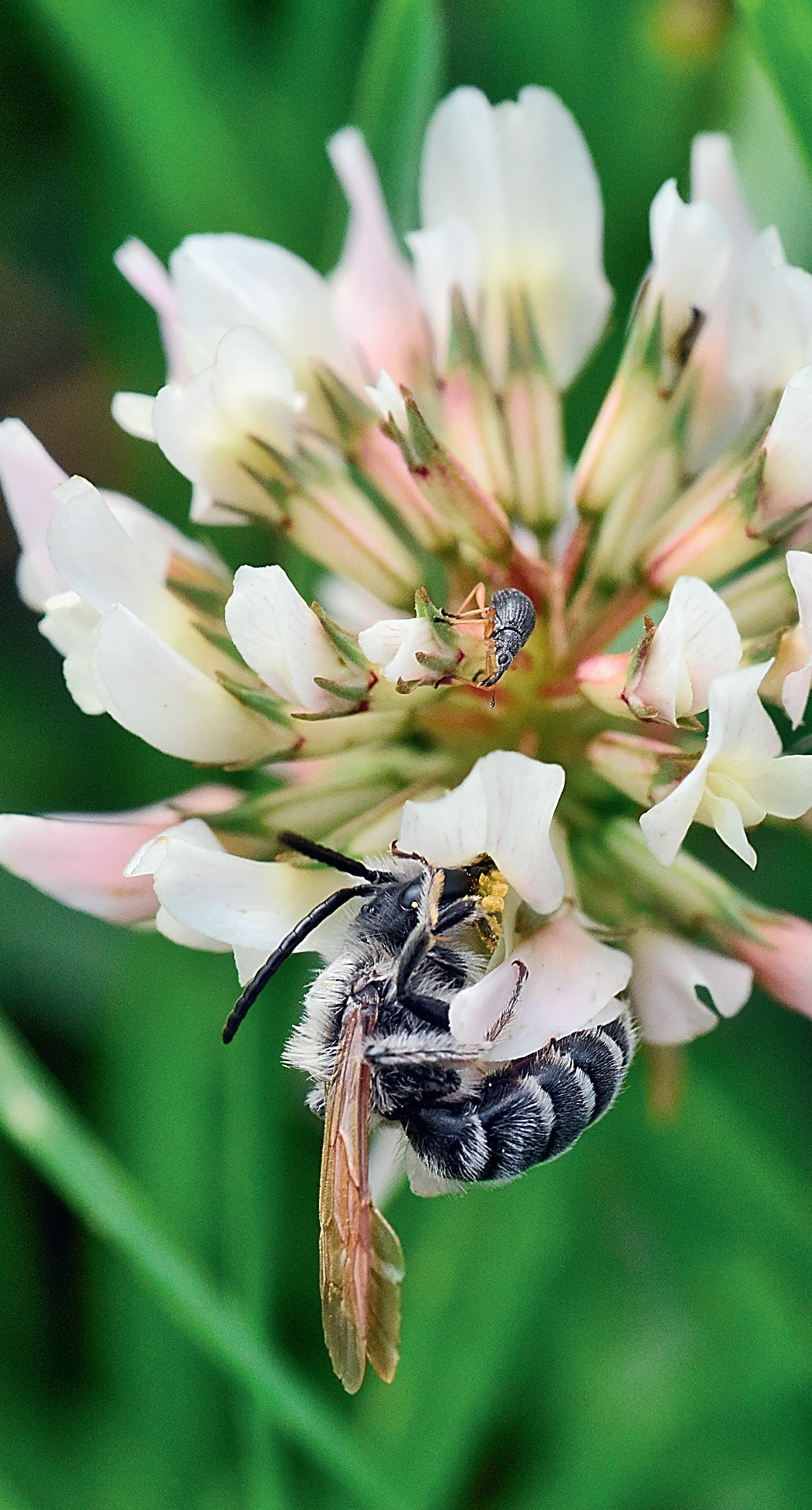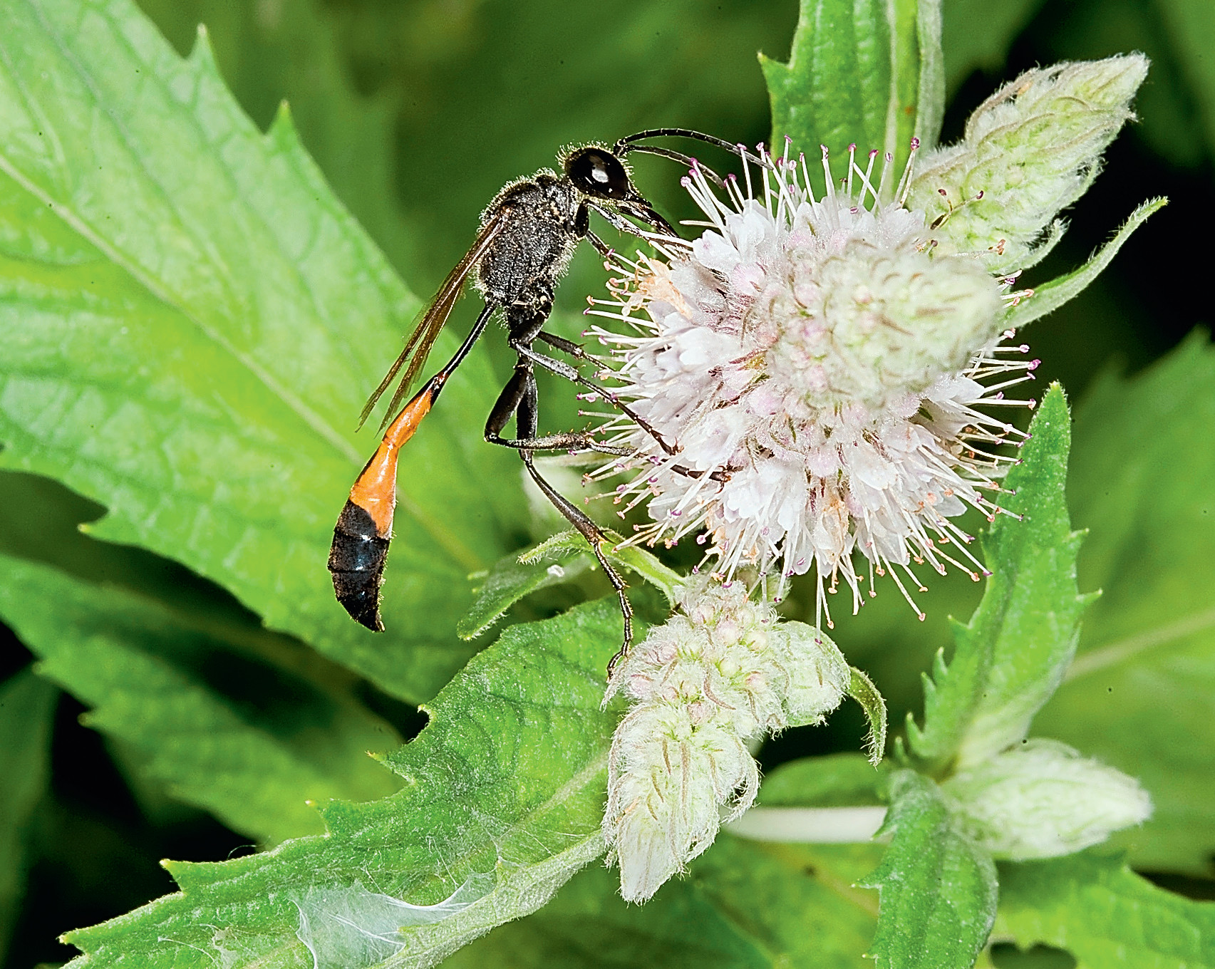 Различия между пчёлами и осами достаточно условны. Пчёлы обычно сильнее опушены, не так ярко окрашены и выкармливают своё потомство цветочной пыльцой и нектаром (см. «Наука и жизнь» № 8, 2019 г.). Осы часто бывают почти голыми и обладают предупреждающей окраской, включающей сочетание чёрного, жёлтого и красного цветов. В целом осы кажутся стройнее, поэтому и называют тонкую талию осиной, а не пчелиной. Кстати, питающуюся медоносную пчелу можно ухватить за крылья так, чтобы она не могла извернуться и ужалить.