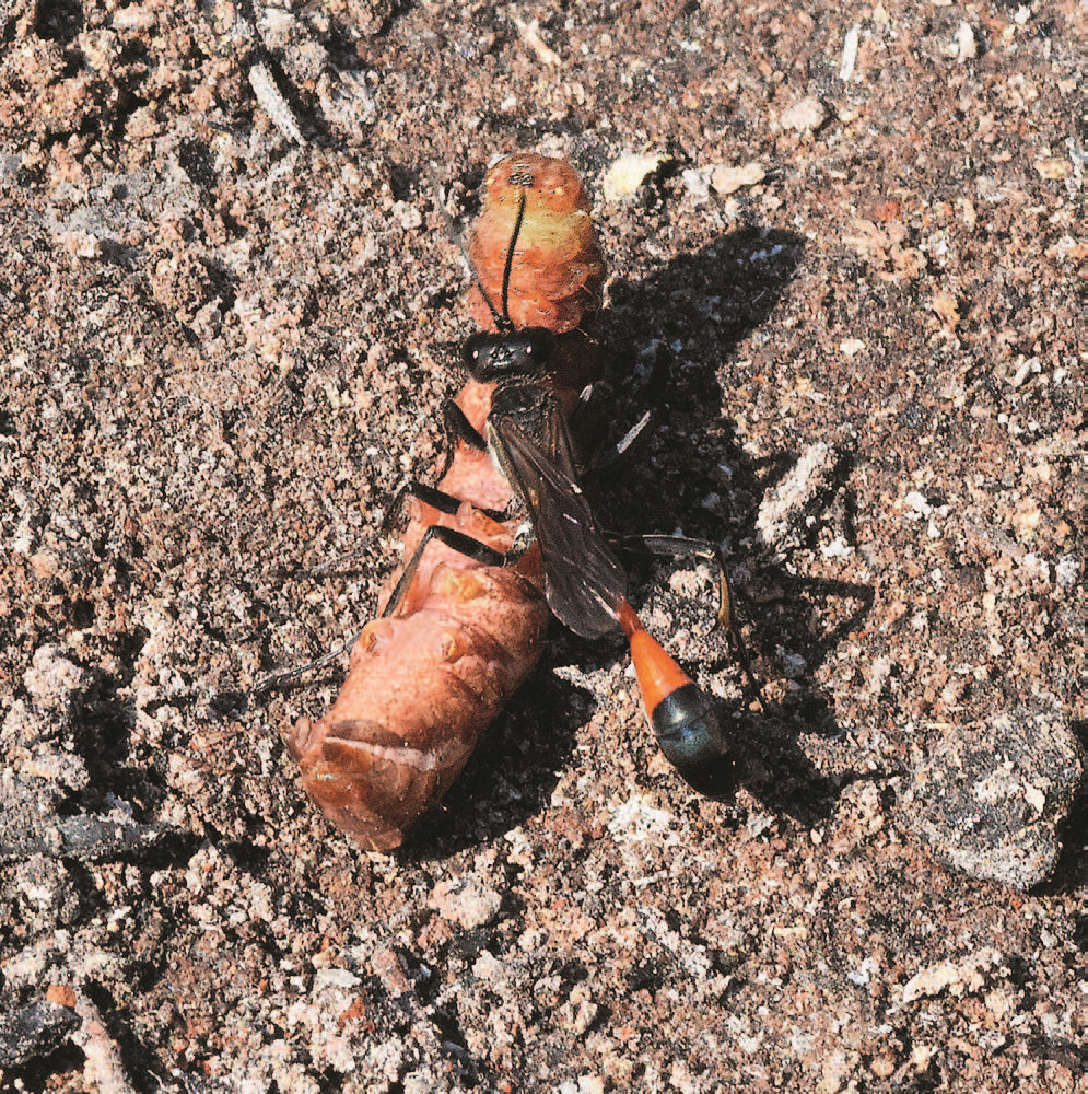 Пожалуй, самой тонкой и длинной талией обладают некоторые роющие осы, которые известны любителям природы благодаря работам французского энтомолога Жана-Анри Фабра. Это, например, аммофила песчаная (Ammophila campestris). Её брюшко похоже на булаву с длинной ручкой. Зачем ей это? Как естественный отбор мог привести к появлению такого уродливого строения? Едва ли природе можно задавать подобные вопросы. Со своим гротескным брюшком аммофила ухитряется копать норки, заканчивающиеся гнездовой камерой, и парализовывать гусениц. Оса хватает гусеницу очень сильными длинными челюстями и колет жалом в нервные центры. При этом она подгибает брюшко так, чтобы ей было удобнее совершить эту операцию. Большую парализованную гусеницу самка волоком подтаскивает к заранее подготовленной норке.