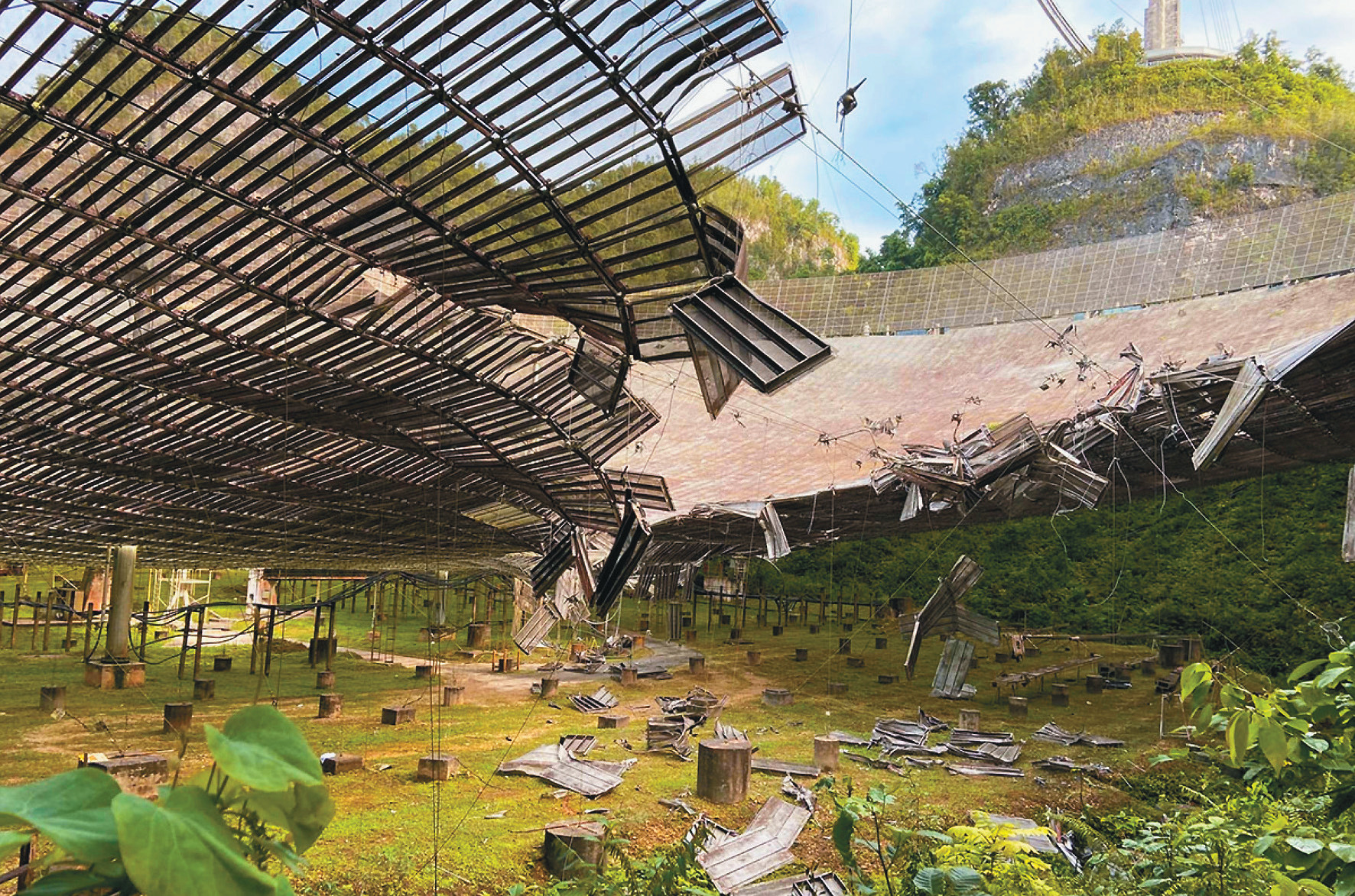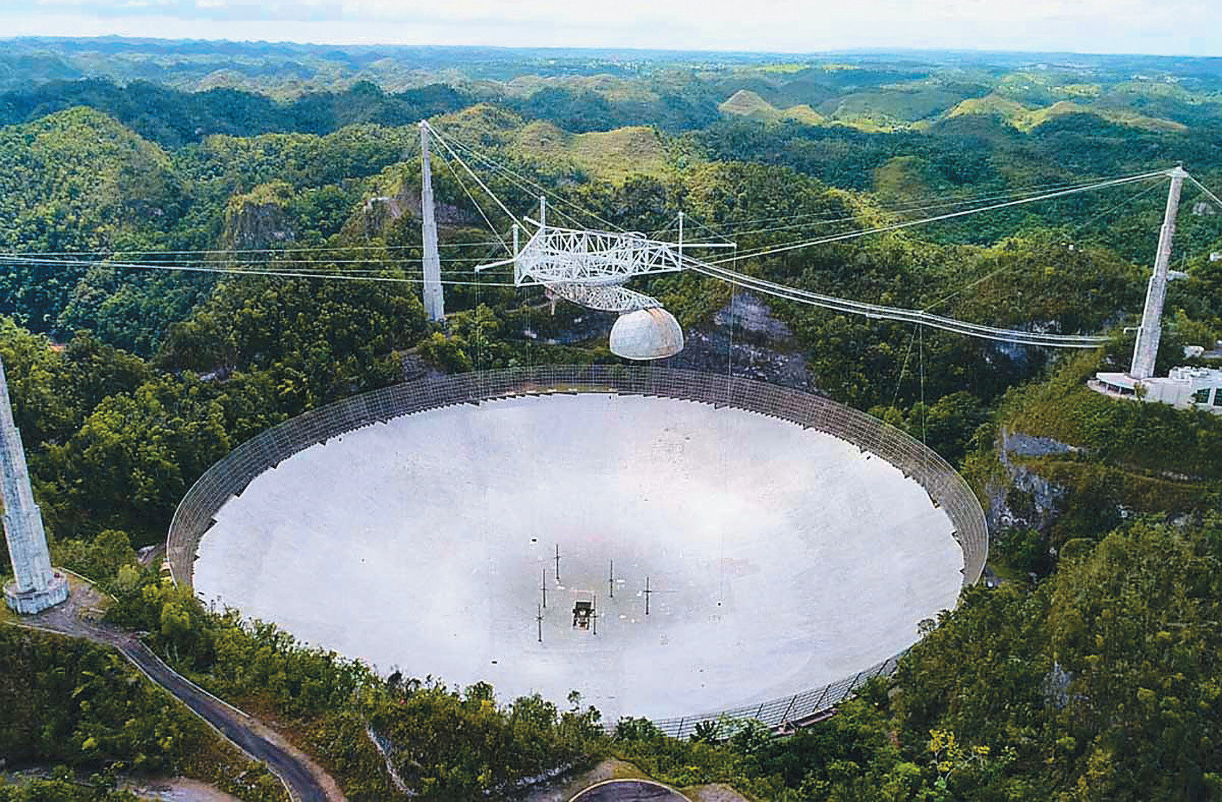 Построенный в 1963 году радиотелескоп в обсерватории Аресибо (Пуэрто-Рико) открыл новую эпоху в радиоастрономии и исследовании ионосферы Земли. Он стал первым в истории гигантским телескопом. Имея отражатель диаметром около 305 метров, он более полувека оставался крупнейшим в мире радиотелескопом со сплошным зеркалом, пока в 2016 году его не превзошёл 500-метровый китайский радиотелескоп FAST. (Российский 576-метровый РАТАН-600 не имеет сплошного отражателя.) Благодаря потрясающей чувствительности радиотелескопа Аресибо удавалось не только заглянуть в глубины космоса, но и разглядеть детали, недоступные другим телескопам. А новый метод исследования ионосферы, разработанный специально под него, позволил получить информацию с ранее недоступных высот. И вот 1 декабря 2020 года — из-за износа несущей конструкции — этот, пожалуй, самый известный в мире радиотелескоп разрушился.