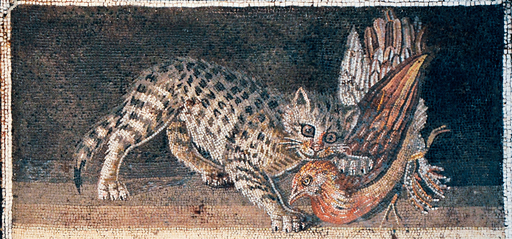 Начнём с кошек. Самыми первыми, кто вывел культ усатых-хвостатых на государственный уровень, были, скорее всего, древние египтяне. Боги с котами, богини с головой кошки, верховные божества в образе кошек — коты у обитателей берегов Нила были в большом почёте. Позже «эстафету» котофилии подхватили древние греки вместе с древними римлянами. Так, в Помпеях и других римских городах обнаружено множество мозаик и фресок с изображениями кошек, занятых различными делами. Будь у римлян смартфоны, чьими фотографиями была бы забита их память?
