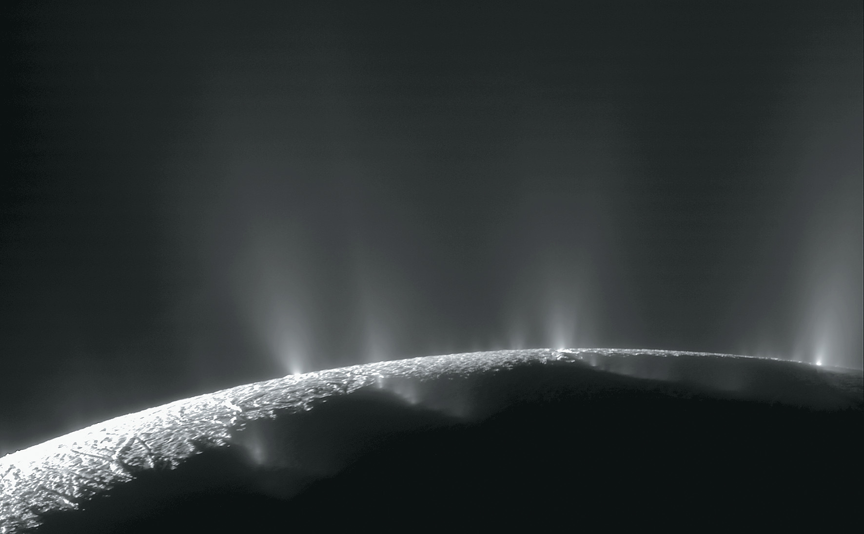 Поверхность спутника Сатурна — Энцелада — покрыта толстым слоем безжизненного льда с температурой под две сотни градусов ниже нуля. Однако под этим многокилометровым ледяным панцирем, как полагают исследователи, находится океан с жидкой водой. Одно из доказательств его существования — мощные водяные гейзеры, бьющие сквозь трещины в ледяной поверхности на высоту свыше 100 километров. Их впервые сфотографировал в 2005 году аппарат «Кассини», а спустя десять лет «Кассини» удалось пролететь прямо над одним из таких выбросов и изучить его химический состав. Больше всего учёных тогда привлёк метан и большое количество молекулярного водорода, которое говорило о гидротермальной активности на дне энцеладского океана.