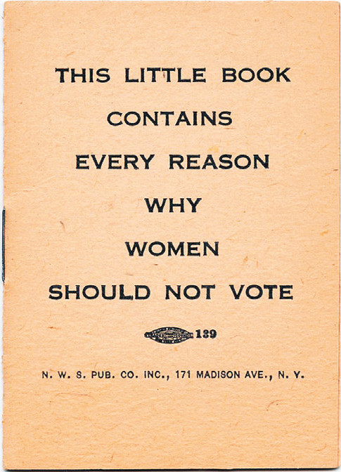 В 1917 году в США вышла книга с длинным названием «Эта книжечка содержит все причины, по которым женщины не должны голосовать», выпущенная суфражистками, сторонницами избирательного права для женщин. Все страницы были пустыми.