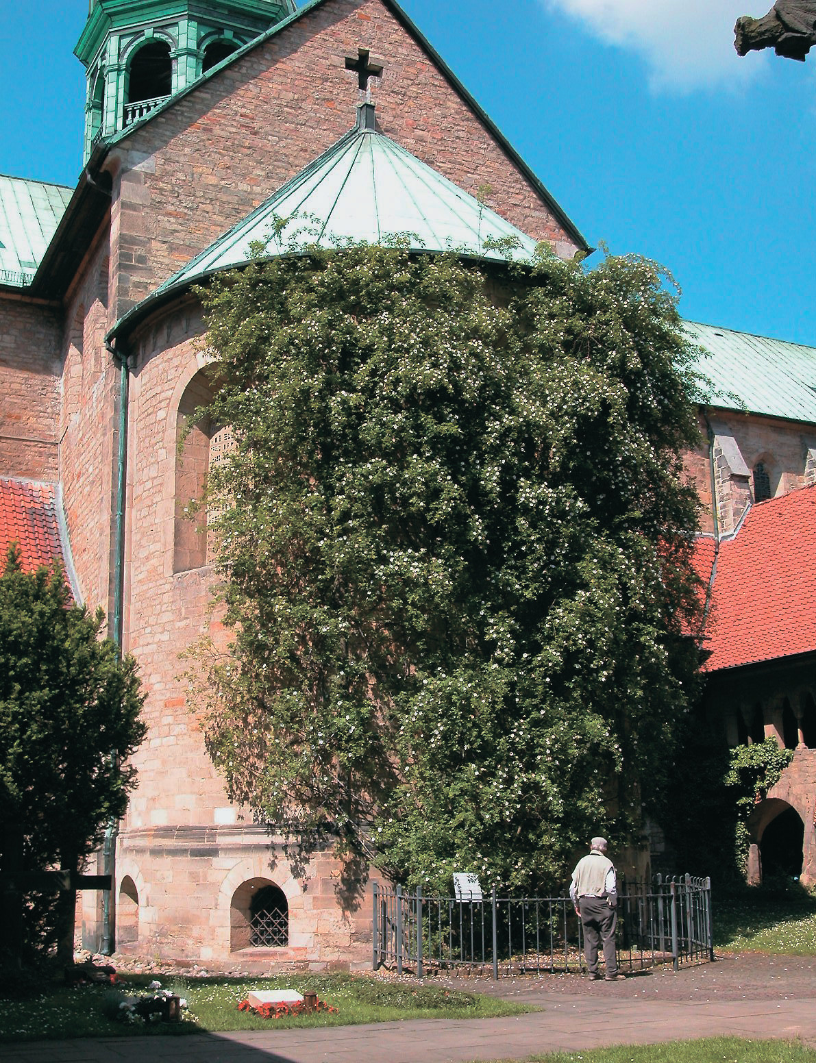 Самым древним в мире розовым кустом считается роза, растущая у католического собора в немецком городе Хильдесхайм. Это не какой-либо культурный сорт, просто дикий шиповник. По легенде, разросшийся куст высотой около 10 м считается тысячелетним, но на самом деле, как определили ботаники, его корню примерно от 400 до 700 лет. В марте 1945 года английские бомбы разрушили придел собора и сожгли розовый куст. Однако уже через четыре недели из земли появились ростки от неповреждённого корневища, что прихожане сочли небесным знамением.