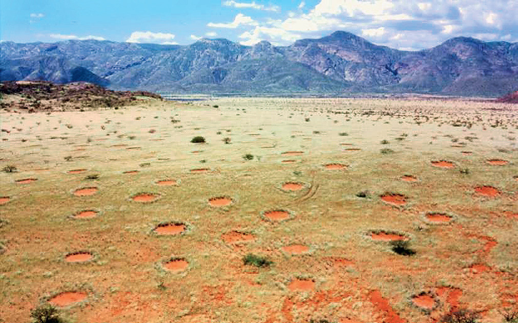 В пустынях Намибии (юго-запад Африки) нередко встречаются так называемые ведьмины круги диаметром от 2 до 15 м. Трава растёт не сплошным газоном, а в виде кругов, которые с ходом времени (а некоторые круги держатся до 75 лет) всё увеличиваются. Среди ботаников нет общепринятого объяснения этому явлению. Одни винят термитов, выедающих корни вокруг своих гнёзд, другие говорят, что в засушливой