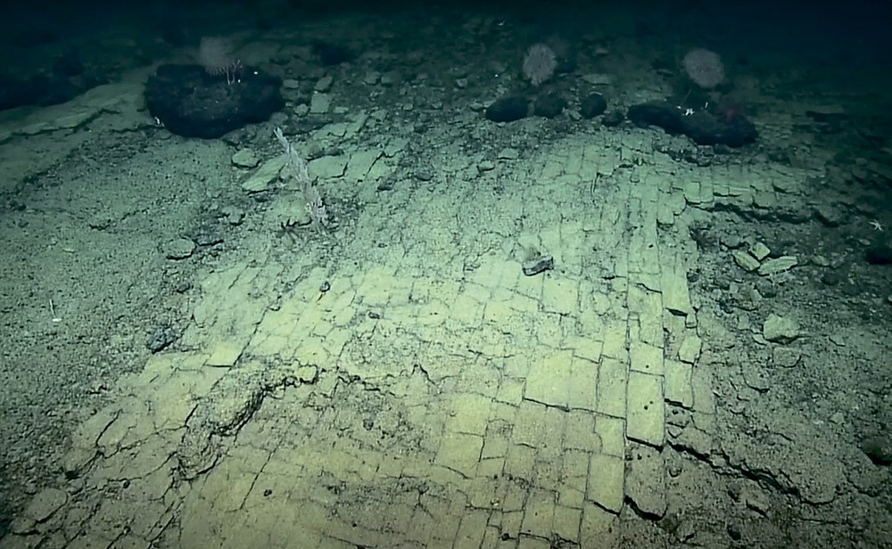 На дне Тихого океана вблизи Гавайских островов американские океанографы сфотографировали на глубине 1029 м нечто, похожее на полуразрушенную временем мощёную дорогу. Остатки Атлантиды? Нет, это лава от расположенного поблизости подводного вулкана растрескалась таким оригинальным образом.