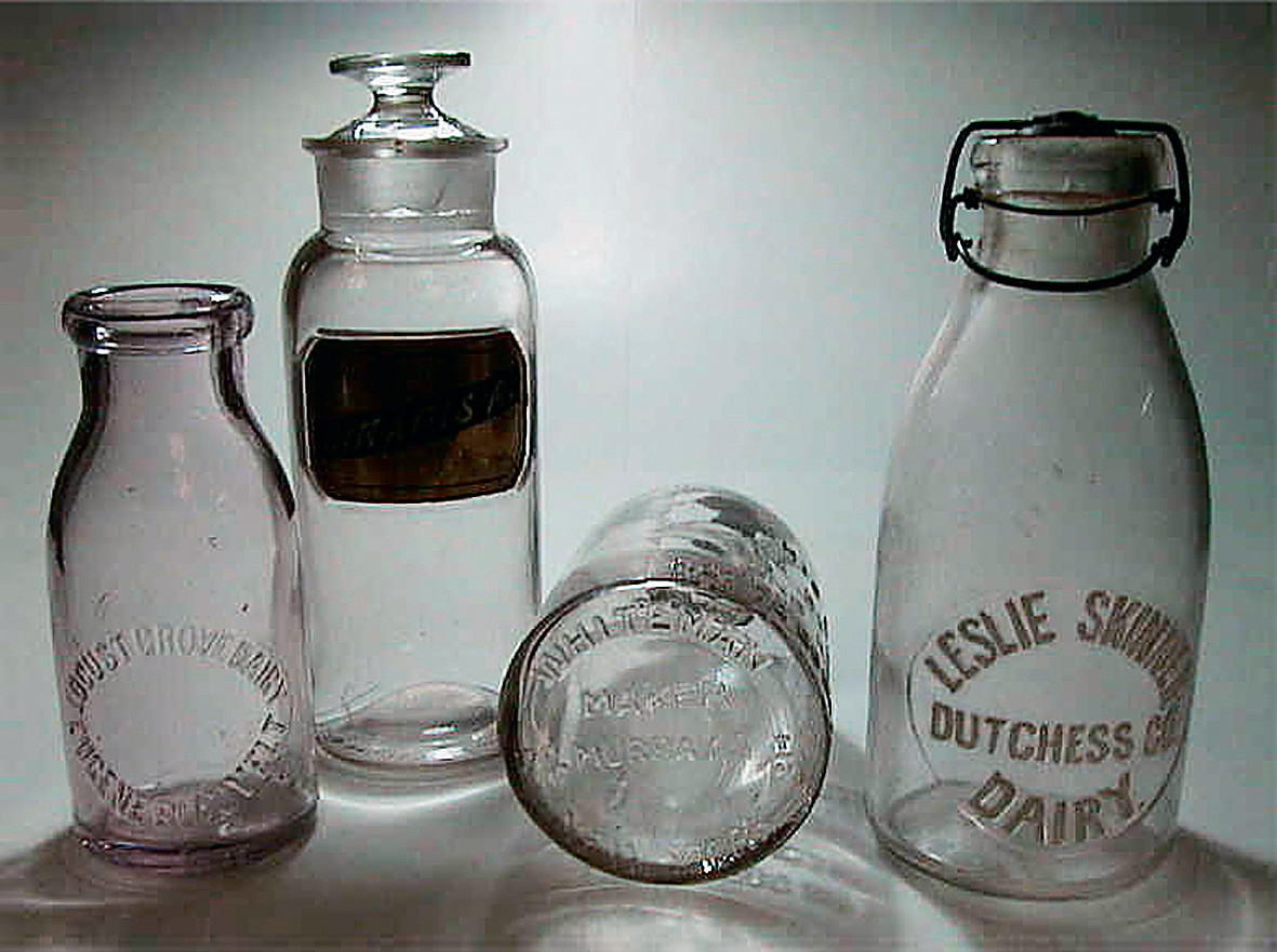 Редкий вид коллекционирования — собирание бутылок из-под молока. На снимке бутылки конца XIX века, тогда они и появились, а прежде за молоком покупатели ходили (или ожидали молочницу дома) с кувшином. Сейчас стеклянные молочные бутылки практически вытеснены полиэтиленовыми и картонной упаковкой.