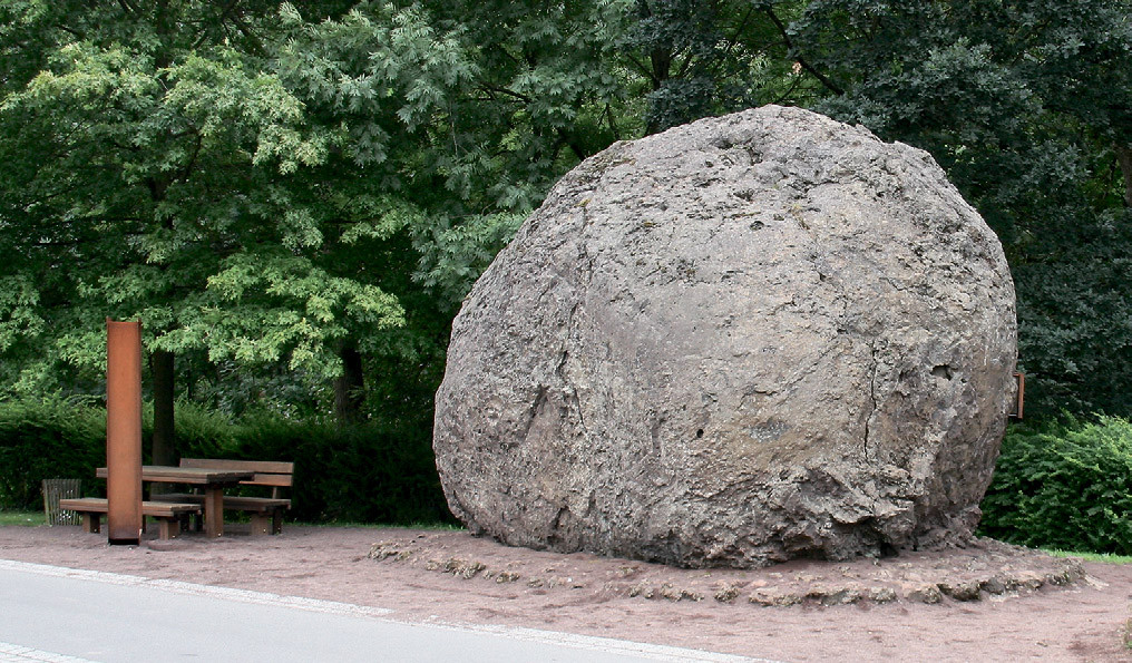 Когда в 1969 году в каменоломне близ городка Штрон на западе Германии (земля Рейнланд-Пфальц) произвели очередной взрыв, из земли выкатилась огромная гранитная глыба. Геологи, проведя исследование и даже просверлив отверстие в гигантском камне, пришли к выводу, что он имеет вулканическое происхождение. Около 8300 года до н. э. при мощном извержении вулкана лава вытолкнула из недр большой камень, который был слишком тяжёл, чтобы сразу вылететь наружу. Он стал то выноситься наверх, то снова тонуть в магме, при этом обрастая новыми слоями расплава и увеличиваясь в размере. Наконец он окончательно заткнул «горло» вулкана. Диаметр валуна около 5 м, масса 120 т.