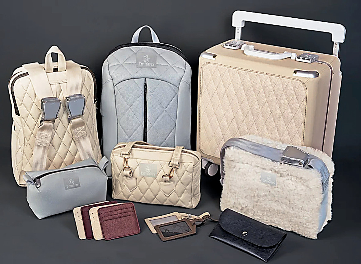 - В Дубае (ОАЭ) налажено производство чемоданов, рюкзачков, бумажников, косметичек и прочих дорожных предметов из отделки салонов авиалайнеров Airbus A380 и Boeing 777. Отделку обновляют, а обивку сидений, всего салона и даже покрытые мехом кресла пилотов пускают на багажную утварь. Из 16 обновлённых пока самолётов получено около 13 тонн секонхенд-материалов.