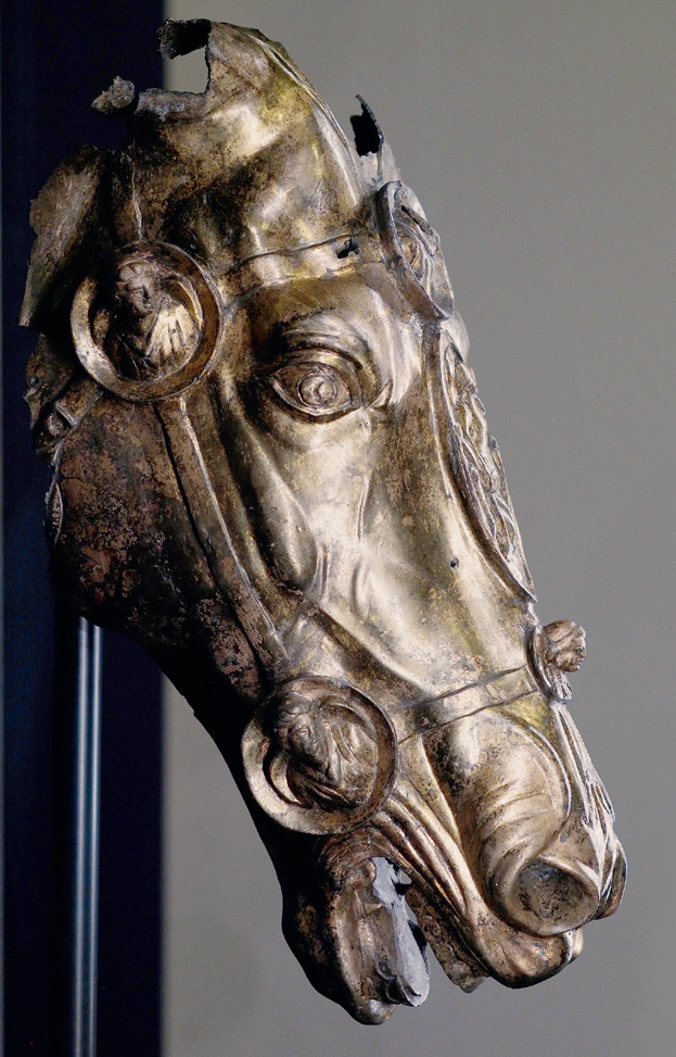 В 2009 году при строительстве на частном участке в общине Ланау-Вальдгирмес (земля Гессен, Германия) были найдены фрагменты позолоченной бронзовой конной статуи римского периода, из которых прилично сохранилась только голова лошади. Владелец участка долго сопротивлялся передаче находки в музей, но после выплаты крупной компенсации согласился с требованиями историков. Реставраторы почистили находку, восстановили позолоту и для прочности покрыли её прозрачной акриловой смолой.