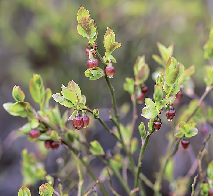 Цветёт черника в мае. Её цветки одиночные, расположены в пазухах листьев. Лепестки розовые, сросшиеся, венчик почти шаровидный с пятью отогнутыми наружу зубцами. Тычинок десять, пестик один и чуть выдаётся наружу. Словно маленькие бубенчики свисают цветки на тонких цветоножках, кажется, тронь — и разольётся по лесу тихий мелодичный перезвон. Недаром черника часто фигурирует в немецких сказках про гномов (они используют это растение в качестве музыкального инструмента).
