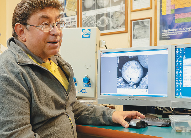— Основное направление работы лаборатории — палеомагнетизм, то есть определение магнитного поля Земли в отдалённые геологические эпохи по остаточному намагничению образцов горных пород. При палеомагнитных исследованиях мы наработали достаточно большой инструментарий для микрозондового изучения магнитных частиц. Главный аналитический метод, который мы используем, — это метод сканирующей электронной микроскопии с микроанализом. Он позволяет получать не только картинку, но и полный химический состав образца в любой точке размером порядка одного микрона. Практически вся периодическая система, от бора до урана, может быть проанализирована за считаные секунды или минуты. Параллельно мы используем и другие методы, поскольку для решения сложных задач одного аналитического метода, как правило, недостаточно. Поэтому у нас есть и рентгеновский дифрактометр, и целый комплекс приборов для магнитных исследований. Причём это не только та аппаратура, которую можно купить, которую производят большие предприятия, но и магнитометрическая аппаратура, разработанная у нас, в нашей лаборатории. Её производят здесь, в Борке, и снабжают ею другие палеомагнитные лаборатории в России. Эти наработки мы перенесли на новый объект — космическую пыль, её магнитную компоненту. Ключевой момент здесь — пробоподготовка, для чего была создана и оборудована специальная «чистая» комната.