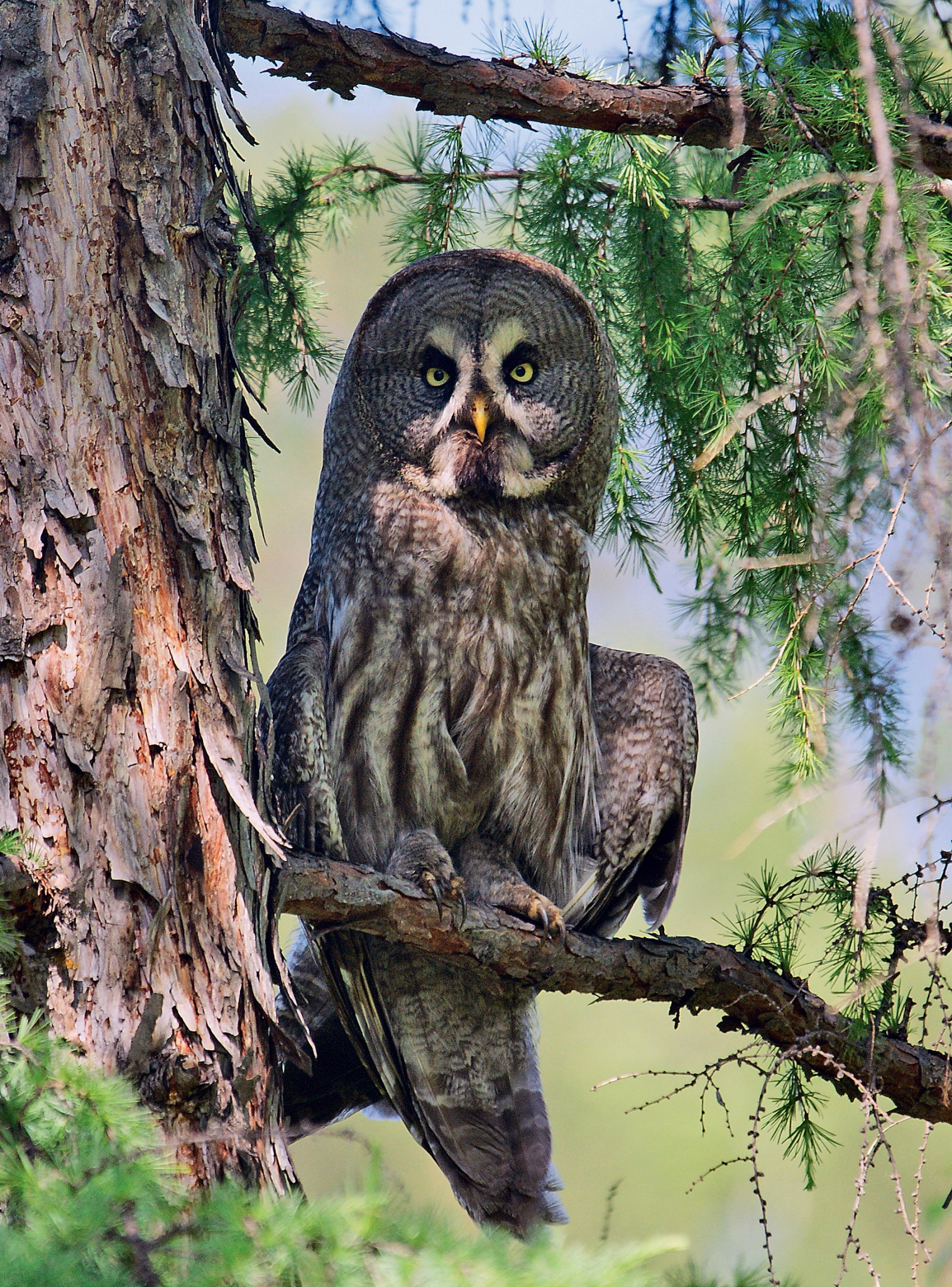 Стоило мне начать приближаться к гнезду, как тотчас появились его хозяева. Быстро и бесшумно, будто тень, надо мною пролетела сова и уселась на соседнем дереве. Она гневно клокотала и шипела. Вскоре рядом с ней появилась вторая, чуть поменьше.