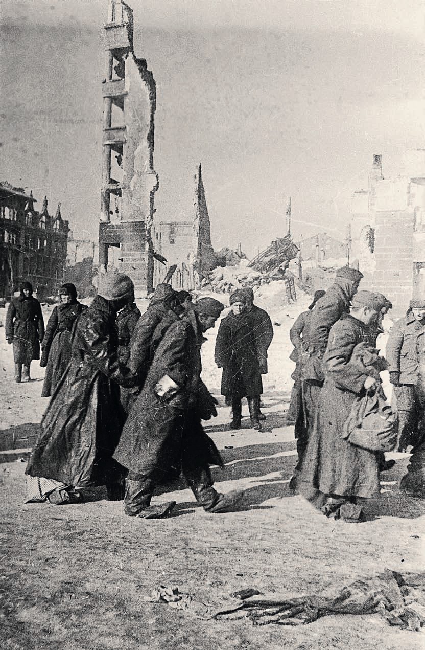 Пленные немцы на улице Сталинграда. 1943 год. Фото Якова Рюмкина.
