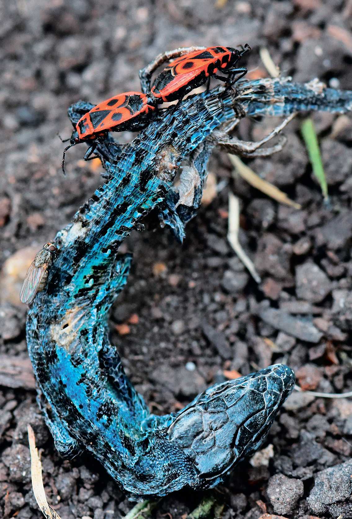 Латинское название солдатиков можно перевести как огненный клоп бескрылый. Почему у них исчезли крылья — загадка. Изредка встречается форма с нормальными крыльями, однако и крылатые клопы тоже не летают. Солдатик даёт одно-два поколения в год, живёт долго, до года, поэтому и численность его велика. Клопы всеядны, очень любят семена растений, иногда добывают цветочный нектар, но среди них отмечается каннибализм. Клопиный хоботок имеет два канала: по одному в пищевой субстрат поступают пищеварительные соки, по другому — втягивается корм (см. статью «Зачем насекомым хоботки?», «Наука и жизнь» № 6, 2022 г.).