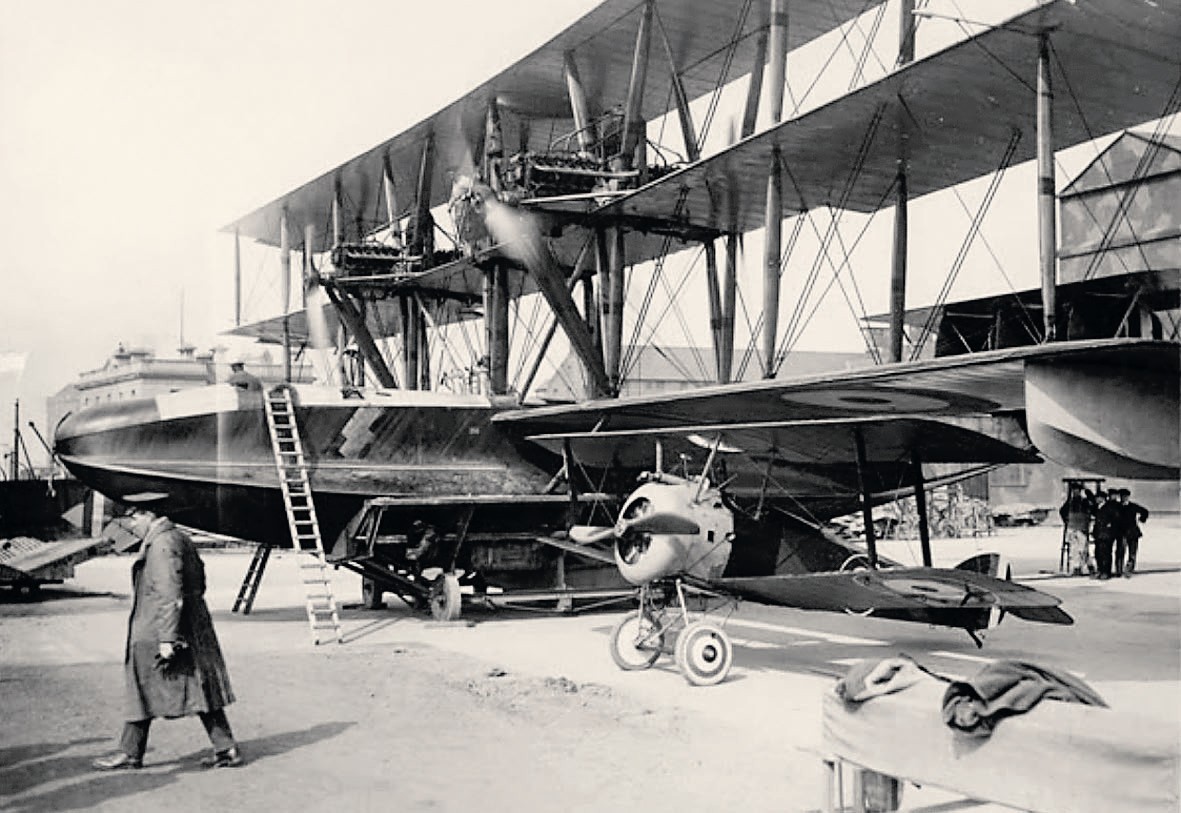 В начале 1919 года в Англии была закончена постройка одного из самых больших самолётов в мире. Он предназначен для перелёта через Атлантический океан на соискание приза в 10 000 фунтов стерлингов. На самолёте установлено пять моторов «Ролльс-Ройсс» по 275 сил каждый, 2 впереди и 3 сзади. В передней части корпуса имеется место для лётчиков, пилотирующих самолётом по очереди, немного дальше расположены резервуары с горючим, а в центральной части устроено комфортабельное помещение для 20—25 пассажиров, багажа и т. д. Рассчитывая на возможную порчу части моторов или на невозможность по тем или иным причинам продолжать полёт, конструкторы установили внутри корпуса ещё небольшой двигатель, приводящий в движение обыкновенный водяной винт, благодаря чему аппарат сможет продолжить свой путь по воде.