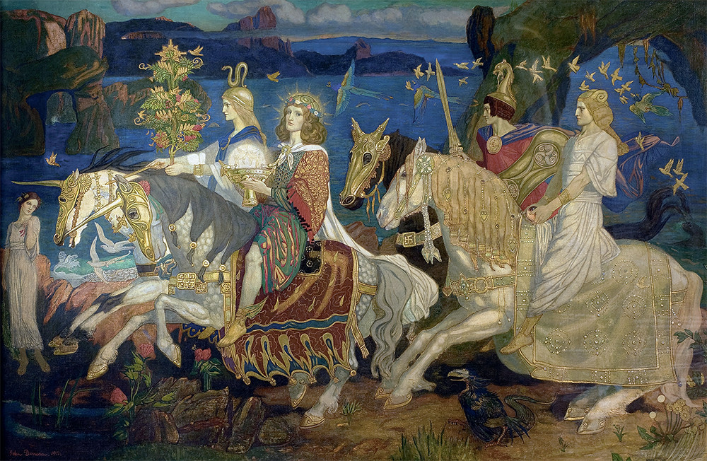В качестве примера мифотворчества такого рода можно привести кельтские легенды, посвящённые обитателям холмов («сидов») — потомкам прекрасного народа Туата Де Дананн (племена богини Дану, или дети Дану), прибывшего в Ирландию на «магическом облаке». Стремясь захватить больше территорий, они сражались с местными племенами и потерпели поражение от гойделов, сыновей Миля, предков современных людей. Чтобы избежать полного истребления, племена богини Дану применили волшебство, набросив на свою страну покров невидимости. С тех пор существуют две Ирландии: обычная и невидимая, в которую человек не может попасть по своей воле. Мир сидов описывается в сагах как невыразимо прекрасное место, где нет печали и скорби, болезней и старости. Время там течёт намного медленнее, земля плодородна, на ней произрастают невиданные музыкальные цветы и деревья. Сами обитатели сидов отличаются высоким ростом и изяществом. Раз в году, под Хэллоуин (31 октября, праздник Самайн), они меняют место жительства, и в этот период граница между мирами становится зыбкой, возникает зона туманов, через которую волшебные существа проникают к нам, а иногда уводят за собой людей.