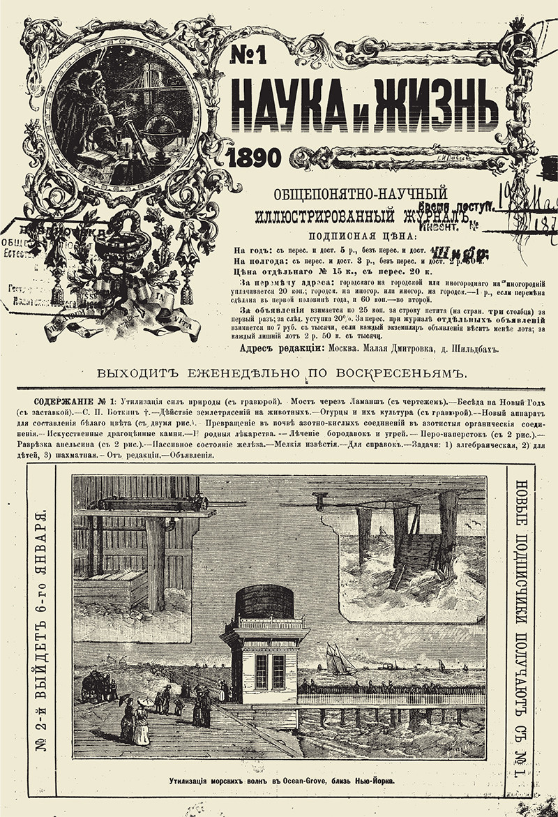 На исходе 2020 год. В этом году исполнилось 130 лет со дня основания журнала «Наука и жизнь» — его первый номер вышел в январе 1890 года, в глубоко дореволюционной России. Редакция нынешней «Науки и жизни» взяла на себя ответственность сопоставить эти даты, перелистать подшивки первых лет выпуска журнала и посмотреть на некоторые научные и технические темы сквозь призму Времени… Хотя при чём здесь «наша» ответственность? Это Время распорядилось так, что журнал с ёмким названием «Наука и жизнь», начавшись в конце девятнадцатого века, пройдя сквозь сквозь двадцатый век, вышел на новые горизонты. Два десятилетия нового, двадцать первого века почти позади, и мы сегодня — возможно, очень наивно — уповаем на то, что и дальше журнал с программой, задуманной в девятнадцатом веке, окажется нужным читателям будущего. «Замахивался» ли на подобную даль создатель «Науки и жизни»? Этого никто не знает.