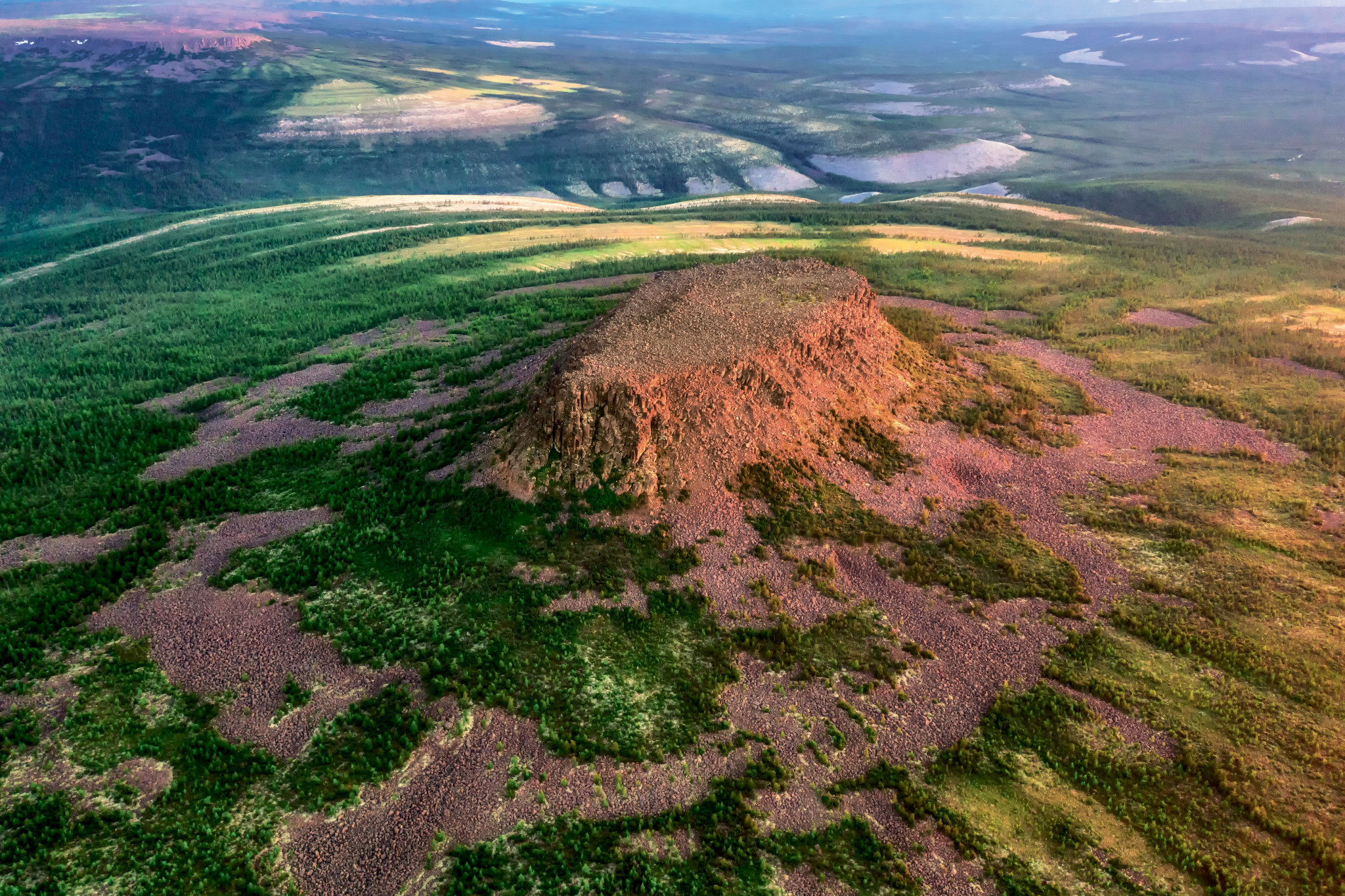 Вот так недавно с подачи Сергея Карпухина, пейзажного фотографа и путешественника, я узнал, что в центральной области Среднесибирского плоскогорья существует своеобразная фотографическая terra incognita — Вилюйское плато. И действительно, мне не удалось найти на тот момент в интернете ни одной стоящей фотографии этих мест. Сказалась, видимо, их безлюдность, труднодоступность, а также близкое соседство гораздо более известного и популярного у туристов плато Путорана. Уже одно это подогрело мой интерес к предложенному путешествию. А взглянув на космический снимок предполагаемой точки высадки на северо-восточной окраине плато, где оно круто обрывается в сторону долины реки Оленёк, я убедился, что дело того стоит: моё воображение возбудили необычные формы рельефа. И я решил, что непременно должен увидеть собственными глазами этот загадочный объект.