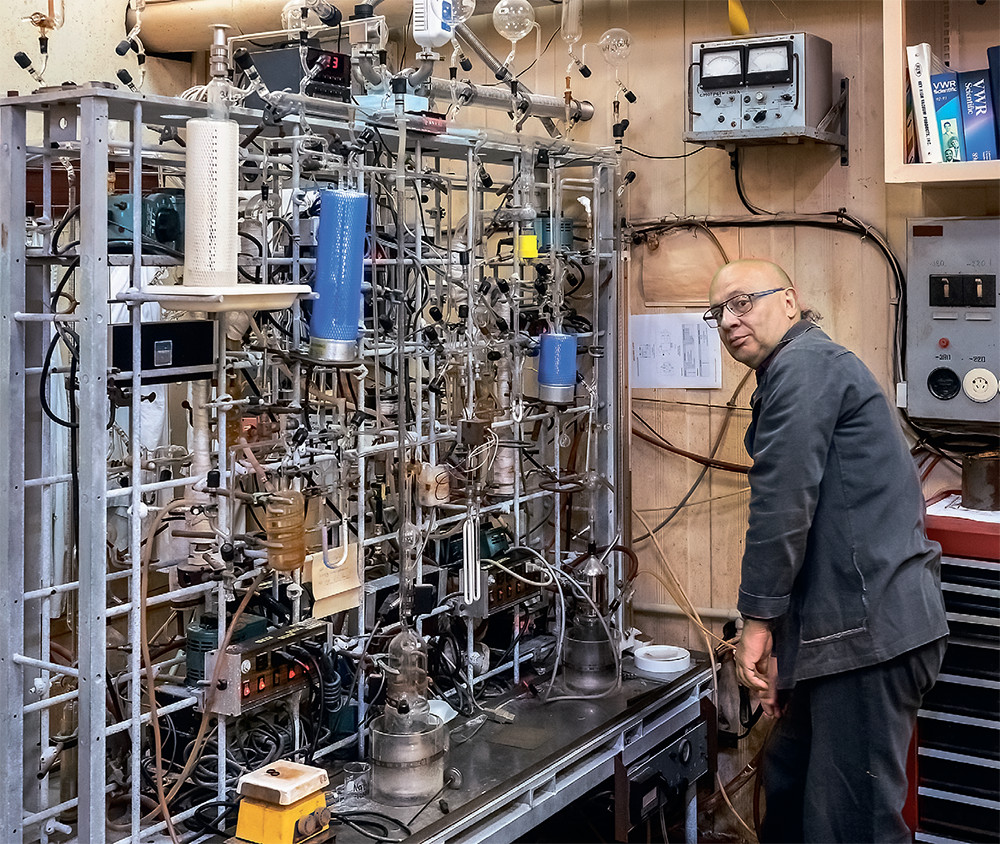 Александр Шихин бережно достаёт из сейфа коробочку и показывает счётчик как великую драгоценность. Счётчик сделан из синтетического кварца. Всего один человек в мире умел делать эти счётчики — Виктор Эдуардович Янц, сотрудник Института ядерных исследований РАН. Но он уже ушёл из жизни, и теперь такие счётчики не умеет делать никто. «Тут, кроме умения работать головой и руками, есть ещё дар божий, чутьё какое-то, — поясняет Александр. — Маленький объём, толщина стенок — всего 100 мкм. Катод счётчика — это углеродная плёнка, осаждённая методом разложения органического газа, например изобутана, на внутренней поверхности этой цилиндрической колбочки. Плёнка имеет толщину всего долю микрона. От катода счётчика делается электрический вывод в виде тонкой вольфрамовой проволочки. А анод представляет собой 10-микронную вольфрамовую проволоку, которая натянута строго по диаметру цилиндра. На концах цилиндр имеет сужение — чтобы компенсировать краевые эффекты, искажение электрического поля. Всё это должно быть выдержано в десятых долях миллиметра, а делается обычным стеклодувным способом и собирается руками. Мы бережём счётчики как зеницу ока». У этого чудо-изделия есть ещё одно свойство: очень низкий радиоактивный фон.