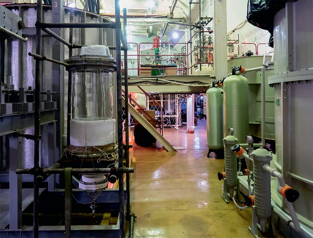 Александр Шихин, научный сотрудник лаборатории ГГНТ, показывает нам одну из комнат систем регистрации. Фактически это сердце лаборатории, в которой происходит счёт событий распада радиоактивного германия-71. Он образуется в галлиевой мишени под воздействием нейтринного потока. «Нейтрино взаимодействует с веществом с помощью одного из четырёх фундаментальных видов взаимодействия — слабого, — объясняет Александр Шихин. — Оно характеризуется чрезвычайно малой вероятностью того, что нейтрино, пролетая вблизи ядра какого-нибудь элемента, будет захвачено этим ядром».
