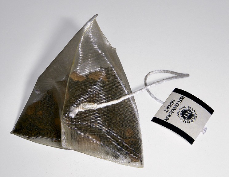 Ещё один неожиданный источник пластиковых микрочастиц — пирамидальные сетчатые пакетики с чаем. Сотрудники университета Макгилла в Канаде, выбросив чай из этих пирамидок, держали их несколько минут в воде той температуры, при которой заваривают чай, а затем просматривали эту воду под электронным микроскопом. Оказалось, что сетка одного такого пакетика испускает 11,5 миллиарда микрочастиц и 3 миллиарда наночастиц (от 1 до 100 нанометров). Насколько они могут быть опасны, сейчас никто не скажет, но авторы исследования рекомендуют либо заваривать листовой чай самостоятельно, либо применять обычные бумажные пакетики.