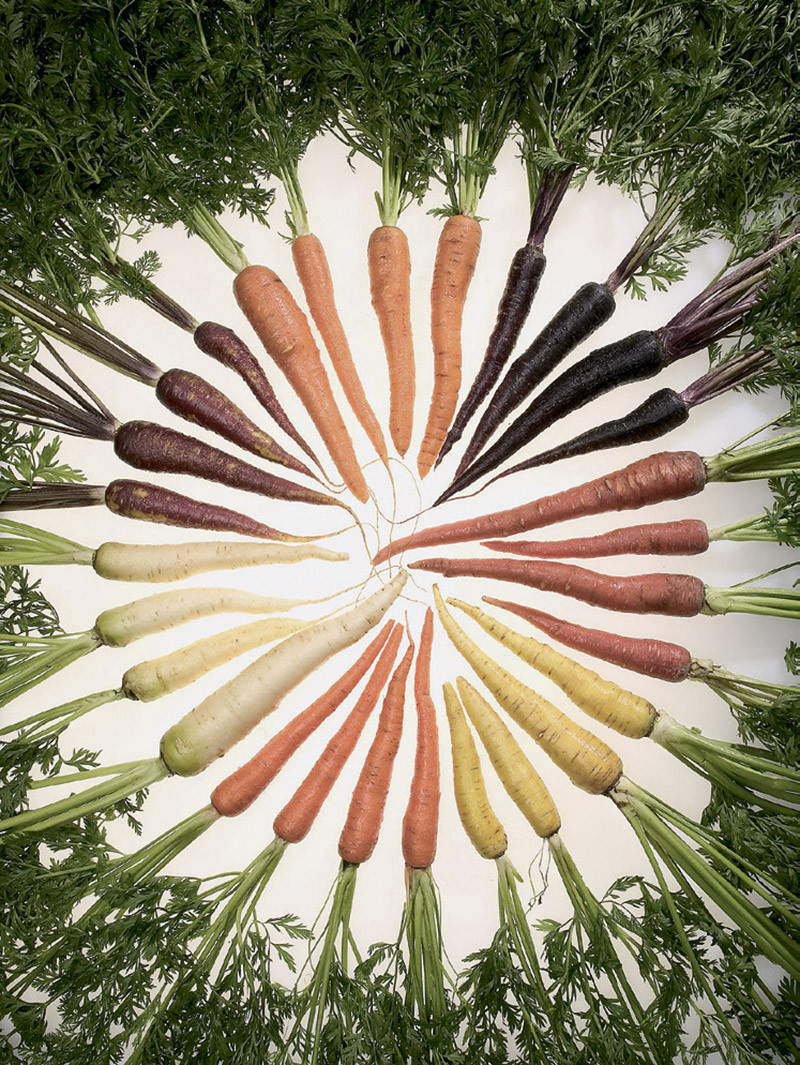 Но, видимо, чем-то эти растения всё-таки привлекли людское внимание, раз ими занялись огородники. Во всяком случае, они точно не могли предвидеть, что будущие сорта этого овоща окажутся важным источником витамина А, открытого только в 1913 году (формулу вывели в 1931-м, а получили в виде кристаллов в 1937-м; синтезируют на химических заводах с 1947 года). В организме человека каротин, придающий моркови её морковный цвет, преобразуется в витамин А, правда, с низким КПД и с большими потерями по пути. В разных сортах моркови бывает от 8 до 25 миллиграммов каротина на 100 г корне-плода, в зависимости от яркости окраски. В ходе многовековой селекции, главным образом в Европе, корнеплоды, исходно жёлтые или фиолетовые, пришедшие из Азии, покраснели и стали значительно толще. Селекция повлияла не только на цвет и размер моркови, но и на сроки цветения. Морковь — двулетнее растение, но огородники сумели постепенно отложить цветение, после которого корень становится жёстким, деревянистым и невкусным, на более поздние сроки. Сами не зная этого, они вывели разновидности с тремя генами, способствующими накоплению каротиноидов, и с несколькими, обеспечивающими задержку цветения. Геномный анализ показал, что генетическое разнообразие дикой моркови значительно выше, чем у возделываемой сейчас на огородах по всему миру, хотя и культурной моркови известно несколько сот сортов. Их используют в самых разных видах, в Германии до сих пор можно отведать морковный кофе.