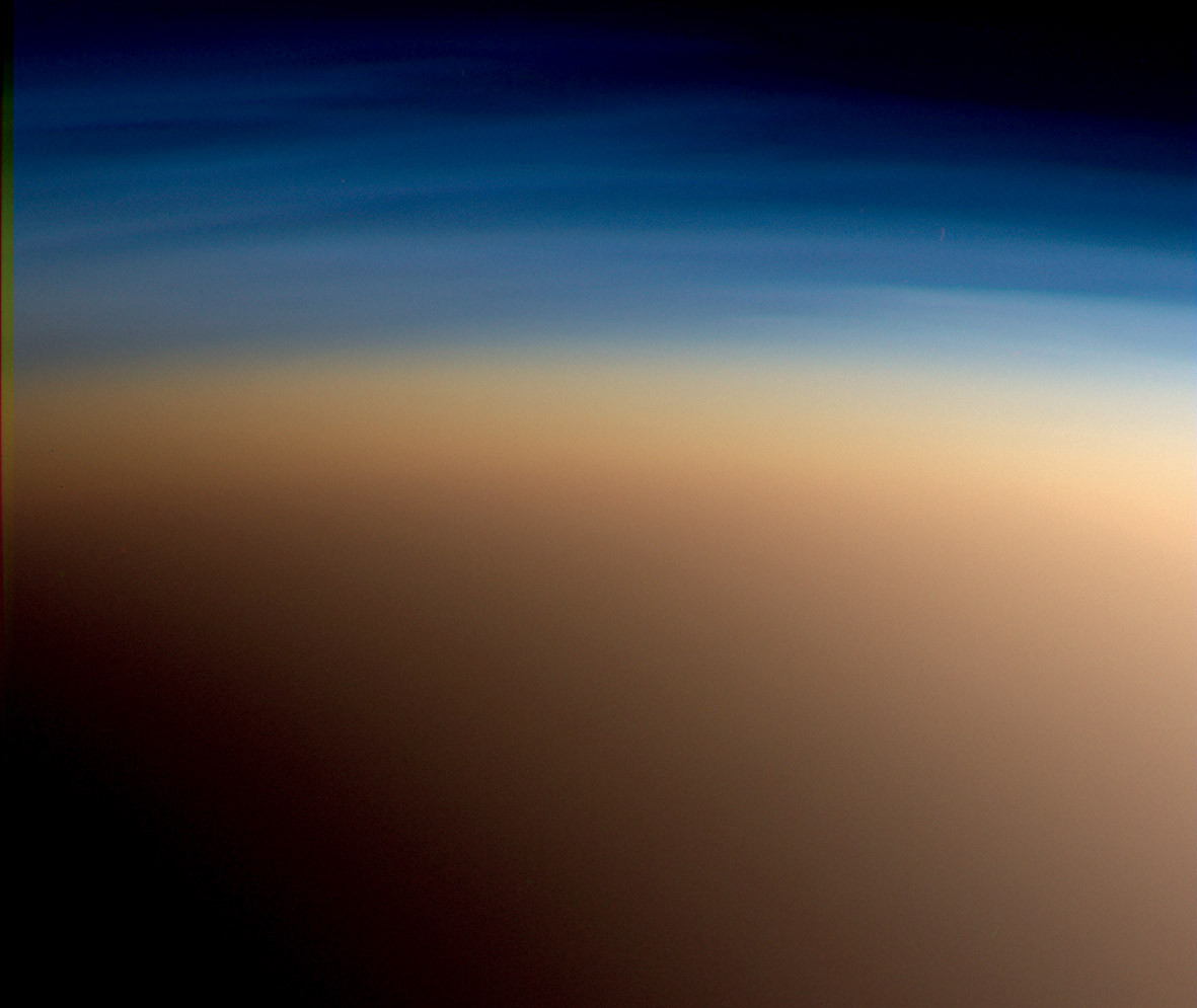 Даёт ли эта синева, так похожая цветом на атмосферу Земли, хотя бы какую-то надежду, что там можно было бы дышать так же, как на Земле? Сможем ли мы вдохнуть полной грудью титановый воздух без последствий для здоровья? Увы, нет — дымка, напоминающая наш родной дом, на Титане обманчива.