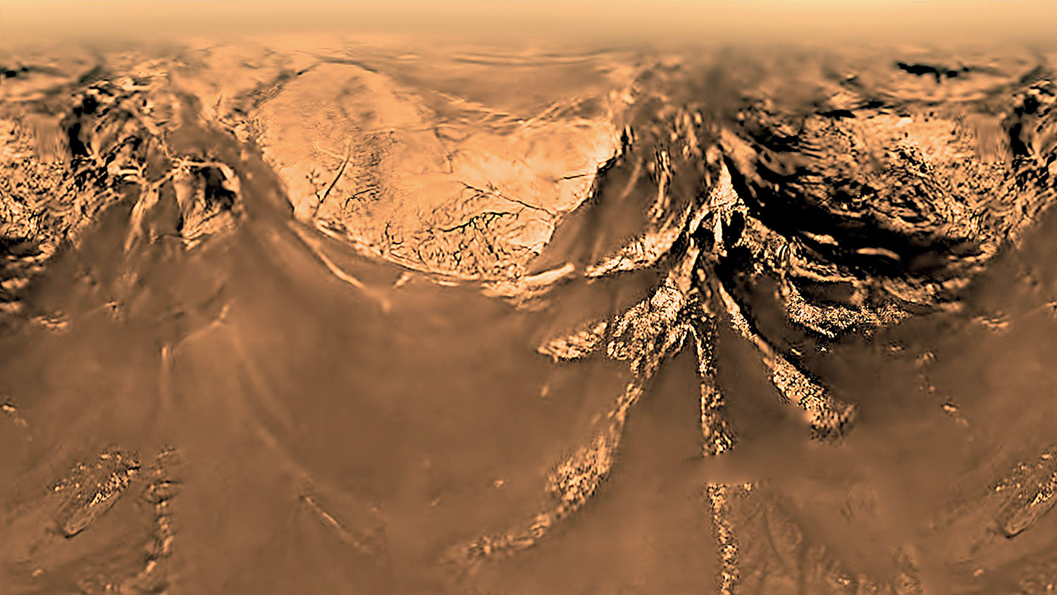 Мир, где метановые реки впадают в метановые моря, а их зеркально гладкая поверхность напоминает сталь своим благородным серым оттенком, где оранжевый туман размывает очертания смуглых гор цвета горького шоколада, где охристые небеса затягиваются тучами и даже идут дожди с грозами, — это мир Титана.