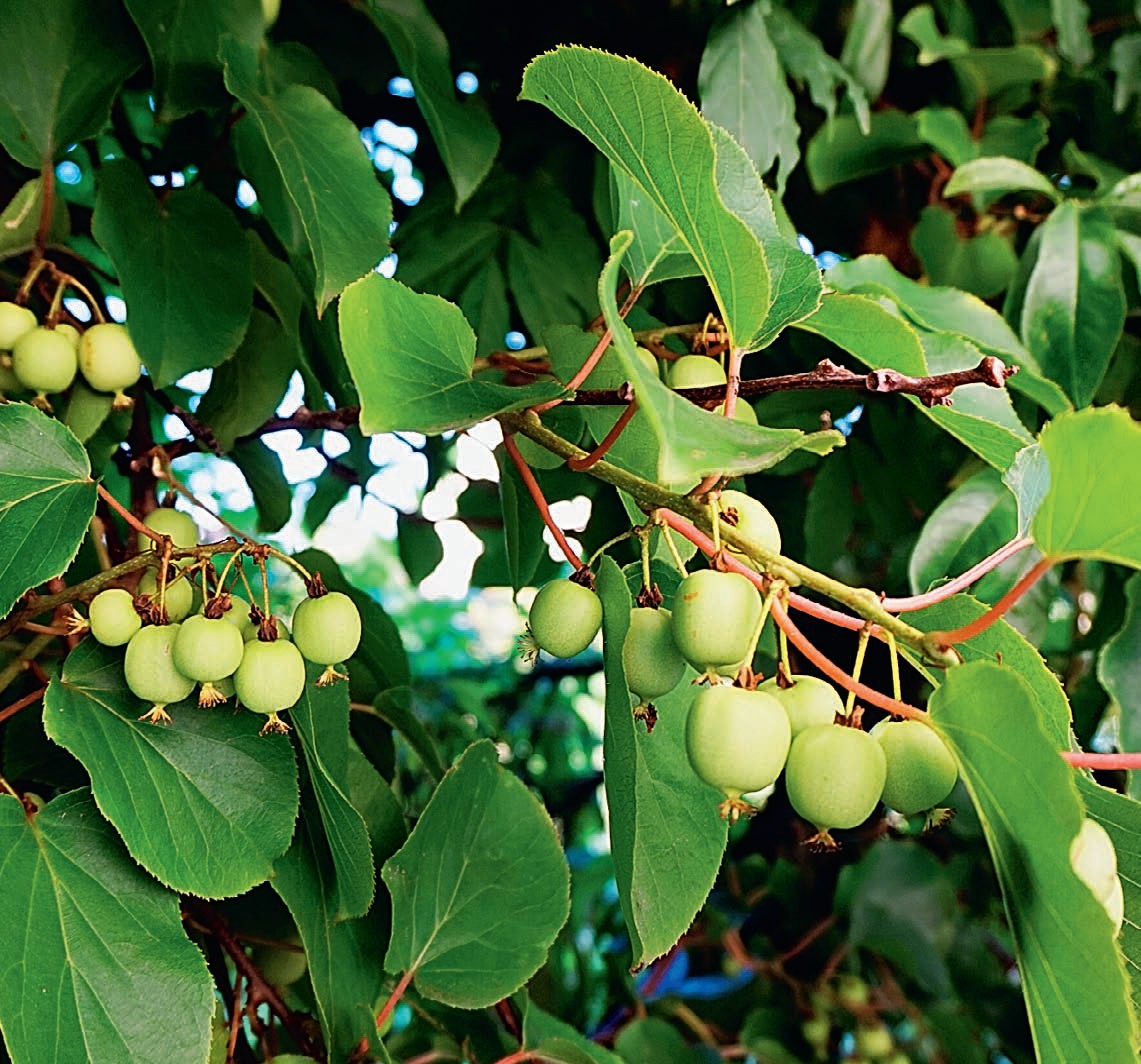 Одна из моих самых любимых позднелетних культур — актинидия коломикта. Ягоды у этой лианы вкусные и полезные, особенно богаты они витамином С.