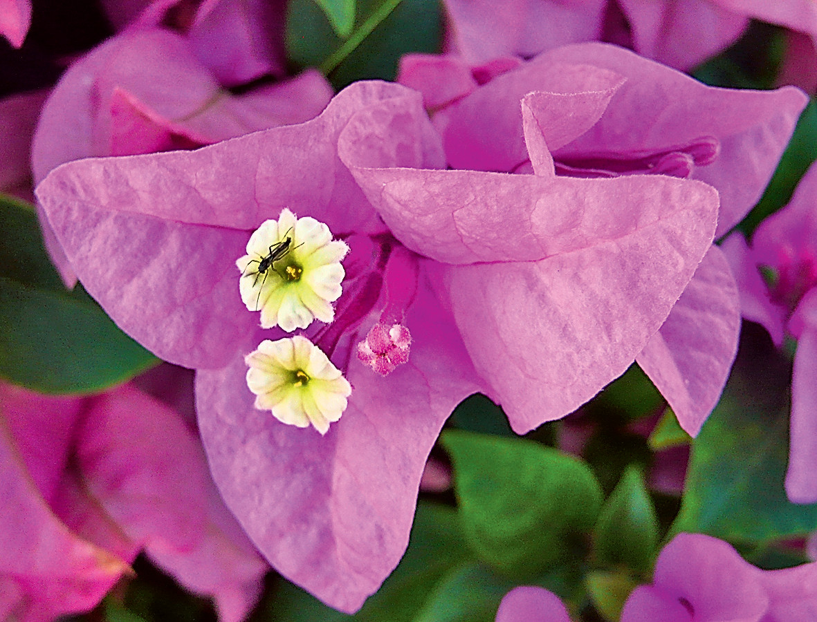 В Южной Америке, к примеру, в изобилии произрастает бугенвиллея (Bougainvillea spp.) — усыпанная лиловым цветом лиана. Растение восхищает буйством красок, но когда разглядишь, что пышно цветут вовсе не цветы, а листья, восхищение сменяется удивлением. Дело в том, что ближайшие предки бугенвиллеи, опылявшиеся ветром, утратили лепестки, тогда как потомки вернулись к опылению насекомыми. А для этого нужно иметь заметные издали цветы. Вот и пришлось «перекрасить» зелёные листики, некогда окружавшие венчик и защищавшие бутон. Такой интересной особенностью обладают все представители семейства ночецветных (Nyctaginaceae), к которому относится бугенвиллея.