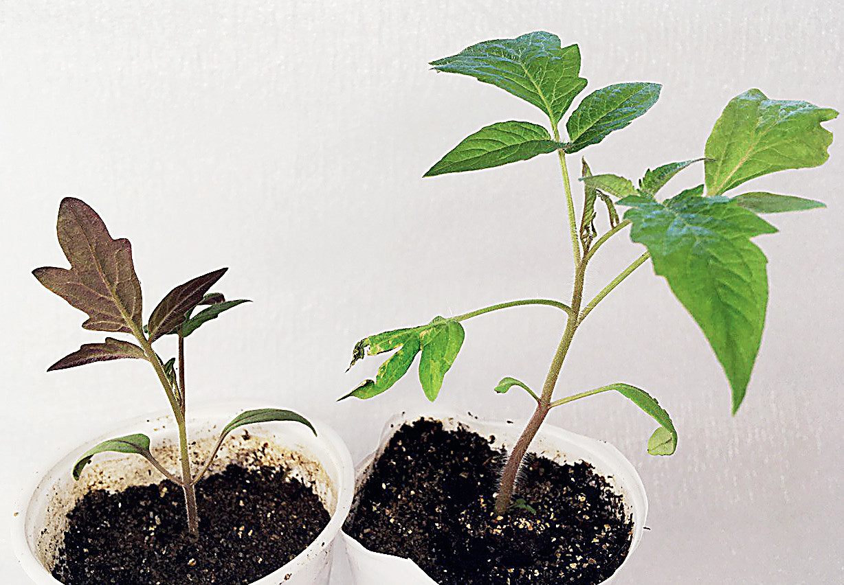 Хороший урожай в большинстве регионов России возможен только через выращивание рассады. Но бывает, что рассада, скажем, томатов, вдруг резко замедляется в росте, новые листья не развиваются — оставаясь мелкими, тонкими, они приобретают фиолетовый оттенок. Так проявляет себя фосфорное голодание растений. Часто проходит неделя-другая, пока огородники начинают предпринимать какие-то действия. А это фатально упущенное время. Ослабленные растения уже не дадут максимального урожая. И к нормальному развитию они возвращаются столь медленно, что проще бывает посадить новые, они обгонят предыдущие в развитии.