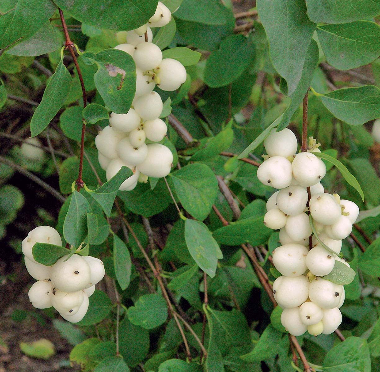 Все снежноягодники (род Symphoricarpos), встречающиеся в культуре, родом с североамериканского материка. Единственный азиат, проживающий в Китае, никем не выращивается. Это растение таинственное и редкое, в котором самое примечательное — иссиня-чёрные ягоды. Зато его белоягодный собрат в числе наиболее популярных кустарников.