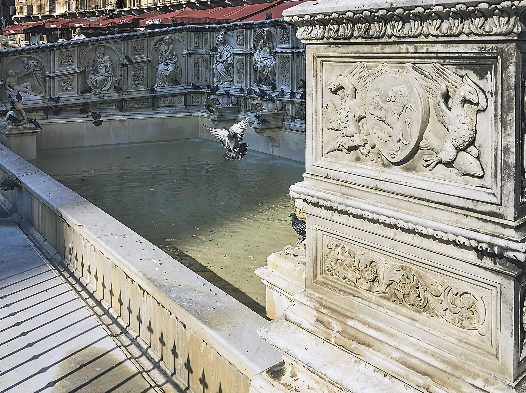 Бассейн фонтана Гайа на центральной площади Пьяцца дель Кампо.