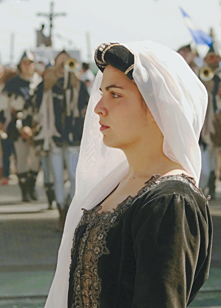 Находка послужила поводом для очередного праздника, которые щедро устраивали процветающие государство и коммуна. Центральная площадь Пьяцца дель Кампо накрылась пёстрым ковром нарядных одежд: собрался не только весь город, но и приезжий деревенский люд, богатые и бедные, гвельфы и гибеллины, аристократы и плебеи. Чуть в стороне от этой массы держалась задумчивая девушка в тёмном бархатном платье. Как перед другими зрителями, перед ней сменялись яркие процессии, разнаряженный Капитан народа водрузил беломраморную римлянку на борт фонтана Гайа, епископ окропил её святой водой, грохотали барабаны, но и они не могли перекрыть восторженные крики толпы. Девушка смотрела и слушала, но всё проходило как-то мимо неё. Она видела только кудрявого паренька, который подбрасывал над головой знамя, ловил его на лету так ловко, как никто. Она видела только его.
