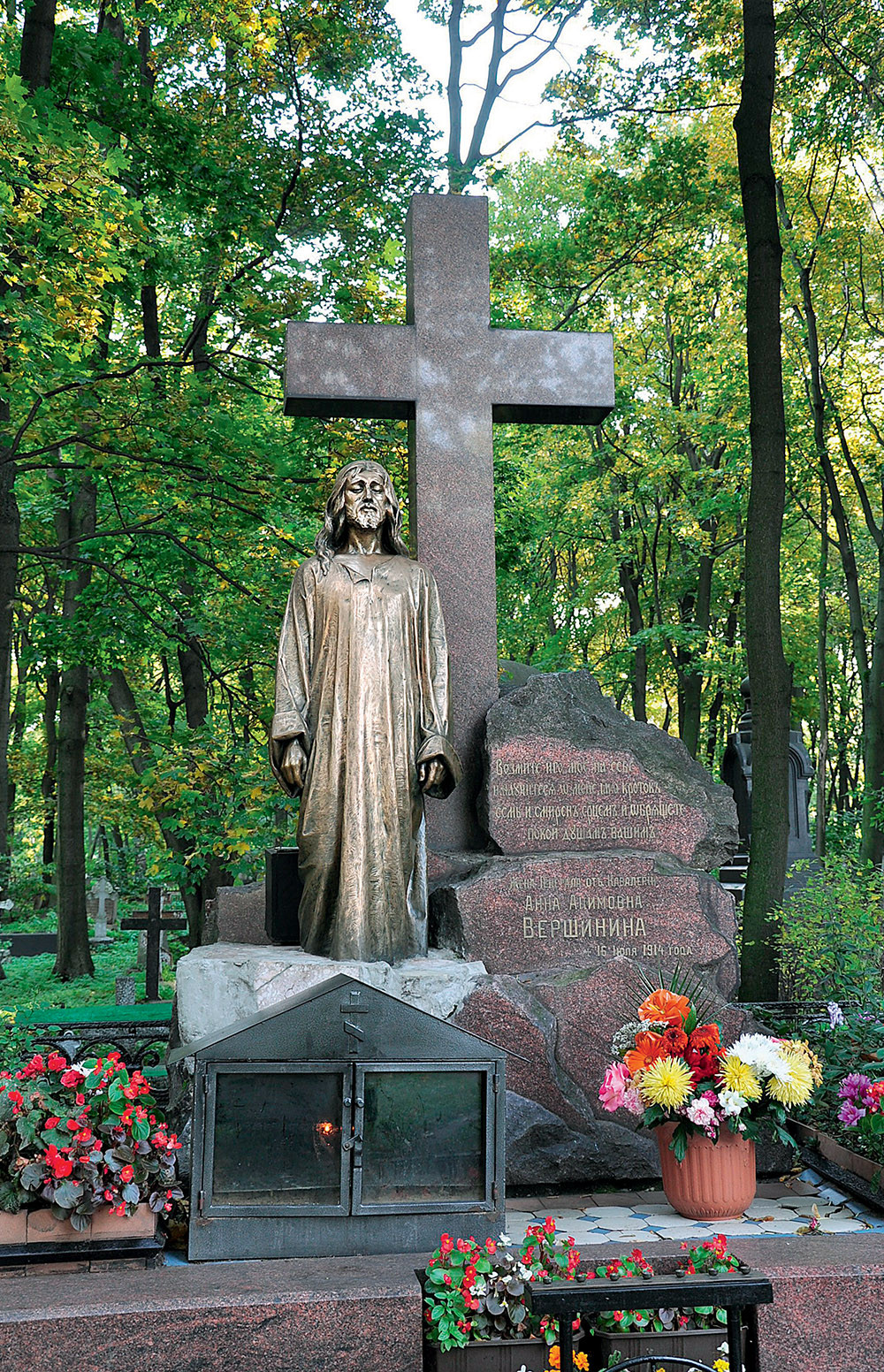 Среди последних особой известностью вплоть до наших дней пользуется монументальная бронзовая фигура Христа на могиле супруги генерала от кавалерии Анны Акимовны Вершининой (1915). Уже более ста лет к этому памятнику на петербургском Новодевичьем кладбище стекаются верующие в чудотворную силу статуи, хотя мало кто знает имя скульптора. Между тем в истории надгробия есть целый ряд любопытных фактов, которые удалось установить по архивным документам, а также русским и итальянским литературным источникам.