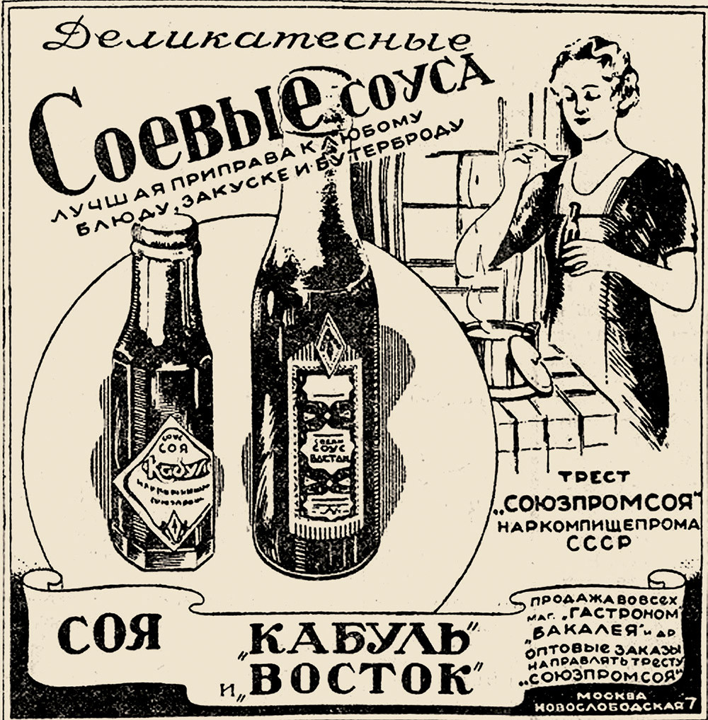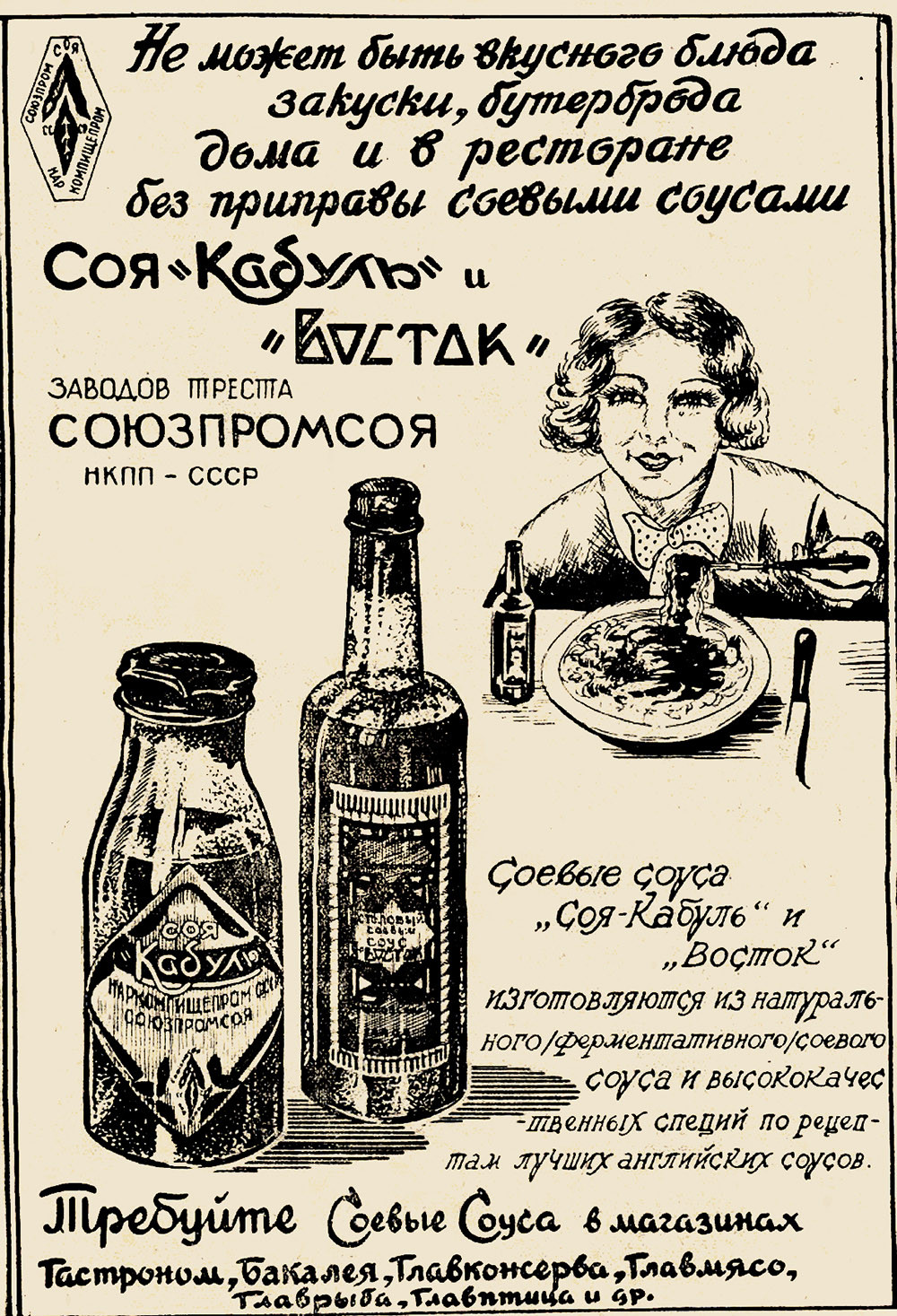 В тридцатых годах двадцатого столетия комбинаты пищевой промышленности СССР стали производить собственный соус «Соя кабуль». В 1939 году в знаменитой «Книге о вкусной и здоровой пище» среди разных рекомендаций по порядку приготовления обеда, была и такая: «Если для приготовления обеда мало времени, то надо подбирать такие продукты, из которых обед можно приготовить быстро… Для заправки блюд в продаже имеются готовые соуса — кетчуп, соя-кабуль, соя-восток и др.».