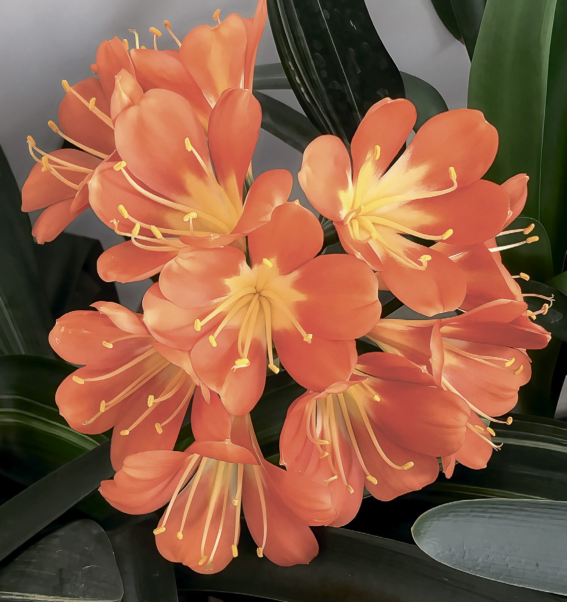 Может ли цветок передать всё великолепие африканского заката? Яркие и контрастные переходы золотого, красного, розового в сочетании с буйством зелени деревьев. Clivia miniata точно может. За пятнадцать лет мы с мужем собрали обширную коллекцию, насчитывающую более двухсот экземпляров. Значительная часть взрослых растений была выращена нами из семян, полученных со всего мира. Множество сортов происходят не только из ЮАР, но также из США, Китая и Европы. Наша коллекция включает как известные и распространённые сорта, так и гибриды. Экспериментирование со скрещиванием различных сортов очень увлекательно.