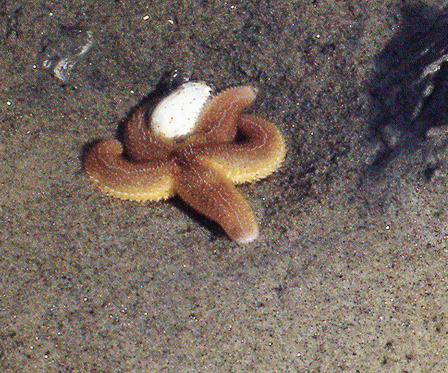 Морской звезде (Asteroidea) разыскать свою добычу несложно. Попав на устричную банку, она ведёт себя как козёл в огороде или, точнее, как волк в козлином стаде. Её обед уж точно никуда не денется, но поди ещё доберись до него. Все усилия хищницы как раз и направлены на то, чтобы преодолеть глухую оборону жертвы. Обхватив слабыми с виду руками ракушку, она присасывается к ней множеством сосочков и растягивает створки с силой в пять килограммов. Тогда мускул моллюска поддаётся. Однако почувствовав хищные объятия морской звезды, флегматичные моллюски могут улепётывать не хуже зайца. Кроме отсиживания в раковине, у них разработаны и другие защитные приёмы. Некоторые двустворки (Bivalvia) уползают от звезды несвойственным им судорожным аллюром. Другие всплывают, хлопая створками, как крыльями. Выталкиваемая при этом вода движет раковину по реактивному принципу. У третьих свой особый метод «скользкого покрывала». Такой моллюск укрывается собственной ногой, эластичной и гладкой, как резина, растягивая её поверх раковины. А уж к ней звезда присосаться не в состоянии.