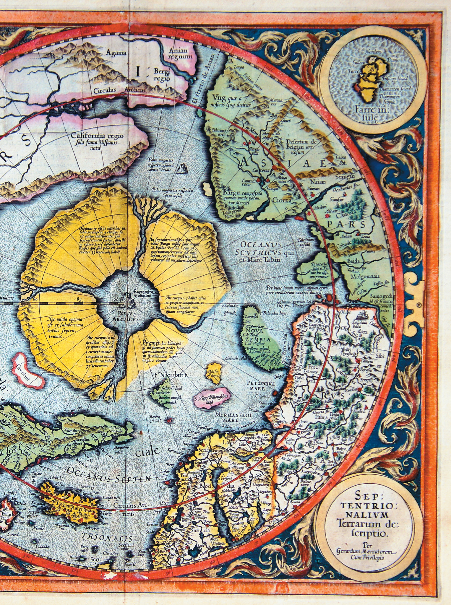 На обложке июньского номера журнала «Наука и жизнь» за этот год был изображён фрагмент карты «Описание Северных земель», или «Septentrionalium terrarum description», работы Герарда Меркатора, впервые опубликованной в 1595 году и затем исправленной его преемниками в 1606 году. Оригинальный экземпляр этой карты вашему покорному слуге посчастливилось иметь в своей коллекции.