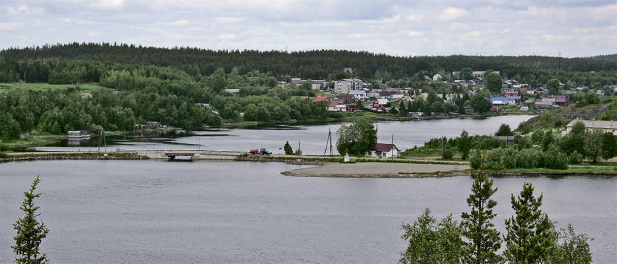 Губа Малая Пирья и посёлок Умба на её берегах.