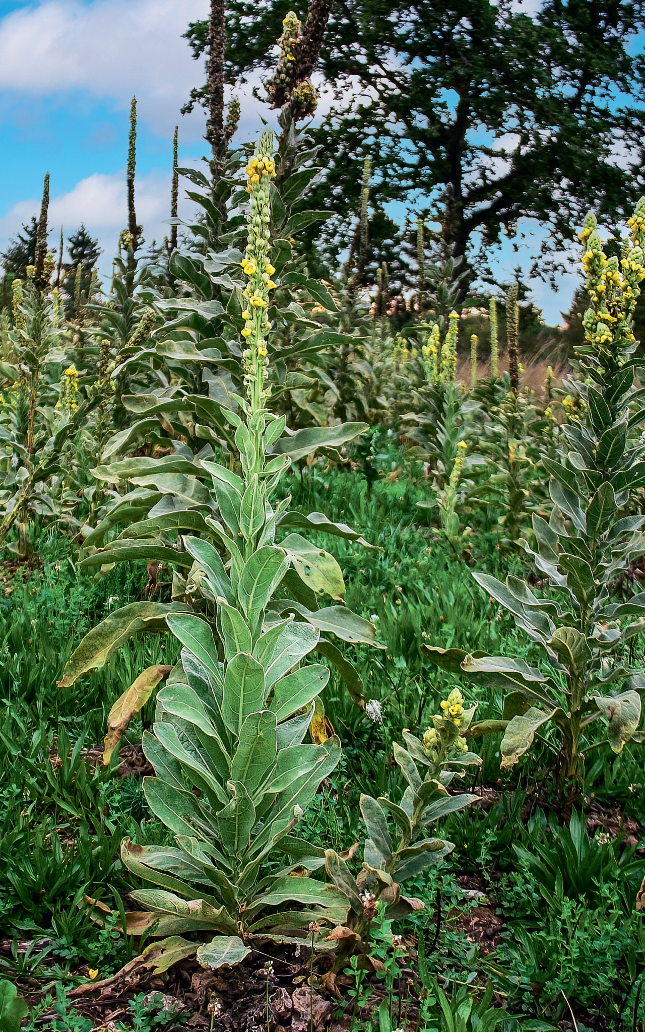 Жарких солнечных лучей и сухости коровяк не боится. У него длинный стержневой корень, способный дотянуться до глубоких водоносных горизонтов почвы. А вся надземная часть обильно покрыта пепельно-белым густым войлочным опушением, защищающим от ожогов и перегрева.