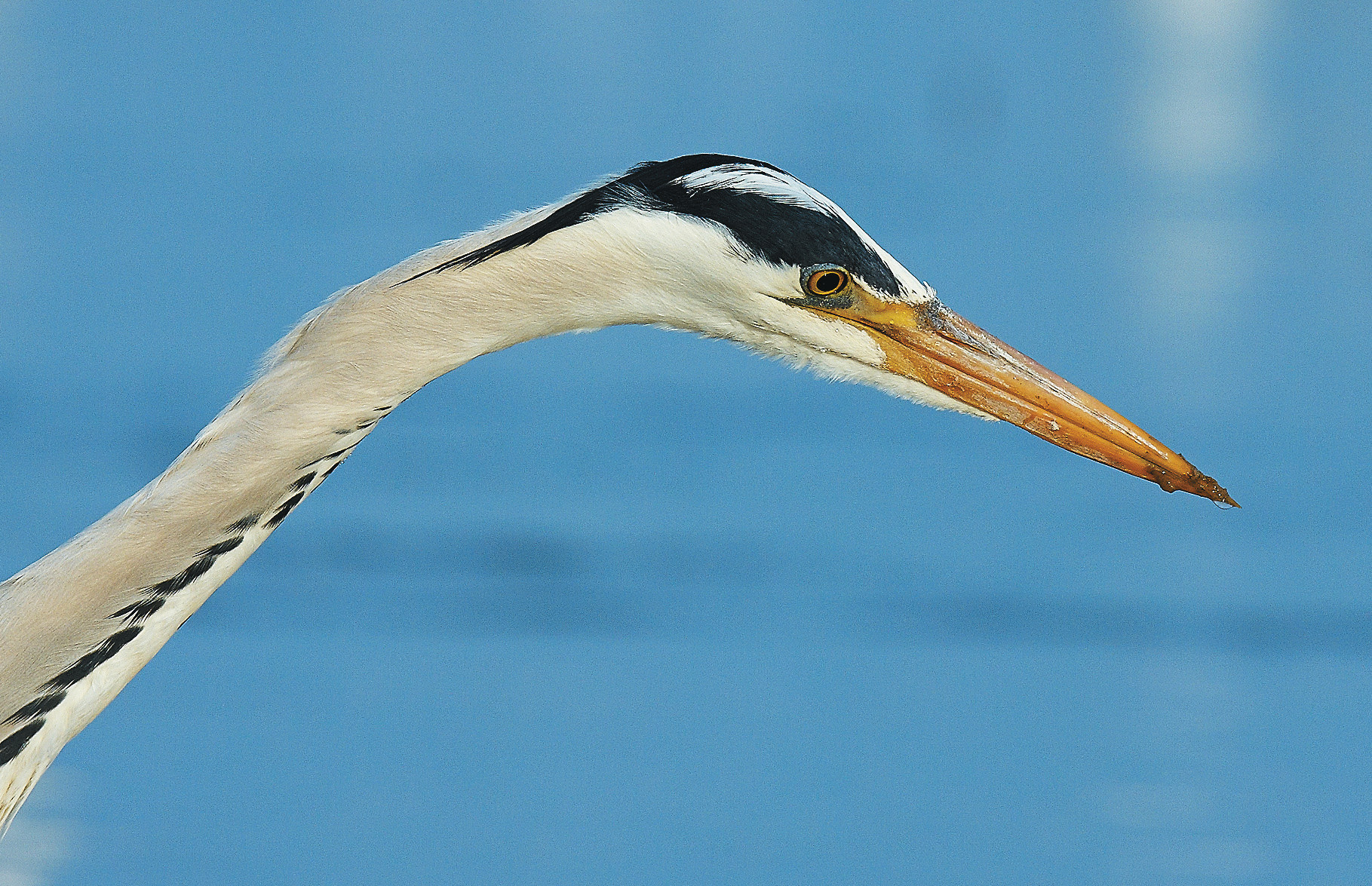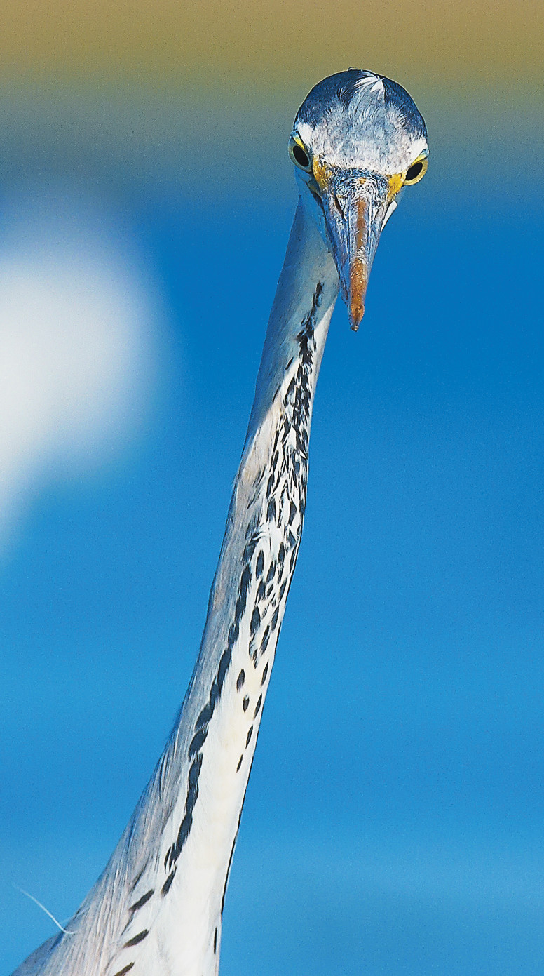 Кроме идеально приспособленного для гарпунной рыбалки эффективного клюва, у цапель имеется много других приспособлений. Одно из важнейших — зрение. Все цапли обладают феноменальной способностью видеть то, что происходит под водой. Уникальность их зрения заключается в сохранении высокой информативности при зрительном восприятии объектов сквозь границу двух сред — воздуха и воды. Способность точно определять под водой цель, искажённую преломлением лучей света, до сих пор является предметом изучения специалистов в сфере прикладной оптики. Кроме того, глаза цапли расположены таким образом, что позволяют сфокусироваться в первую очередь на добыче. Физиологические исследования также подтвердили способность птицы охотиться и в тёмное время суток. Зная об этом, я в ходе подготовки к наблюдениям заранее устраивал замаскированное укрытие на воде. Одной из проблем в элементах скрадывания явился объектив фотокамеры, точнее, его линза. Способность видеть мельчайшие детали в переходных средах воздух-вода ничем не отличалась от такой же способности в средах воздух-стекло. Мой моргающий глаз на другом конце объектива был виден во всех подробностях любой цапле, за которой я пытался наблюдать через видоискатель. Поэтому приходилось ограничивать собственное моргание и затенять заднюю стенку скрадка, дабы не допустить попадания даже самого слабого света в сферу объектива со стороны видоискателя.