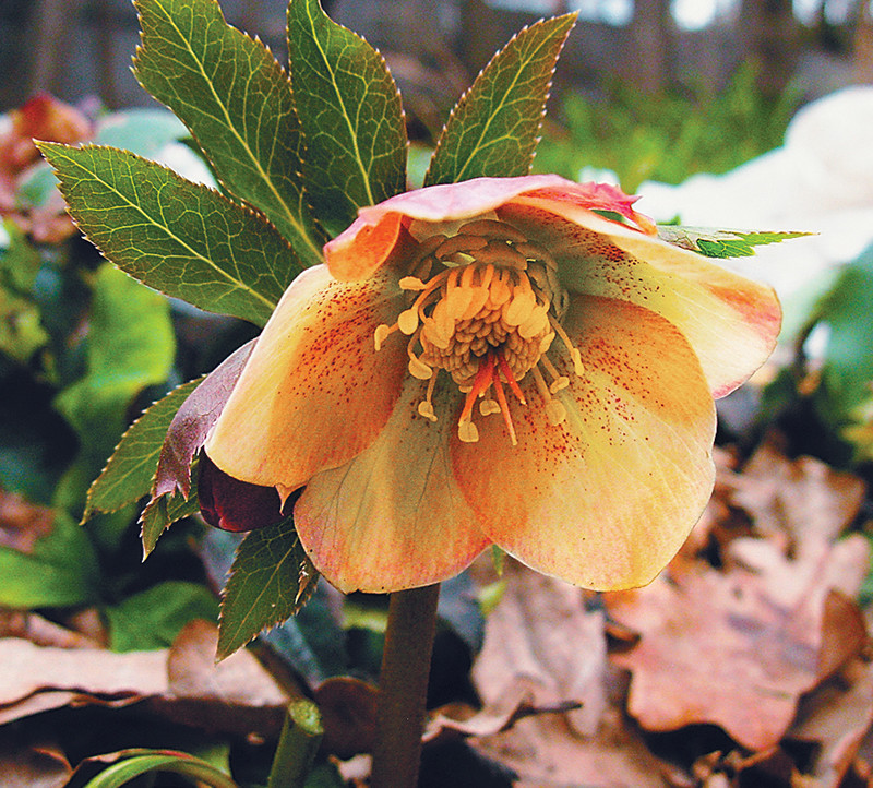 Эндемик Кавказа морозник восточный (Helleborus orientalis) — одно из многолетних растений малочисленного рода Морозник семейства Лютиковые. На первый взгляд кажется, что мы любуемся цветком с пятью красивыми белыми или кремовыми лепестками. На самом же деле красоту создают не лепестки, а чашелистики, образующие чашечку. Лепестки венчика у морозника в ходе эволюции превратились в многочисленные воронкообразные нектарники, расположенные вокруг пышного пучка тычинок. Это приспособление для привлечения насекомых-опылителей: ранней весной в цветках морозников всегда копошатся шмели и пчёлы. Цветение продолжается долго: цветок не вянет, чашечка лишь постепенно меняет окраску, зеленеет по мере созревания плодов, а нектарники осыпаются. Одновременно отрастают новые листья, которые остаются зимовать до следующего года. Листья тоже прекрасны: крупные, кожистые, глянцевые, сильно рассечённые!